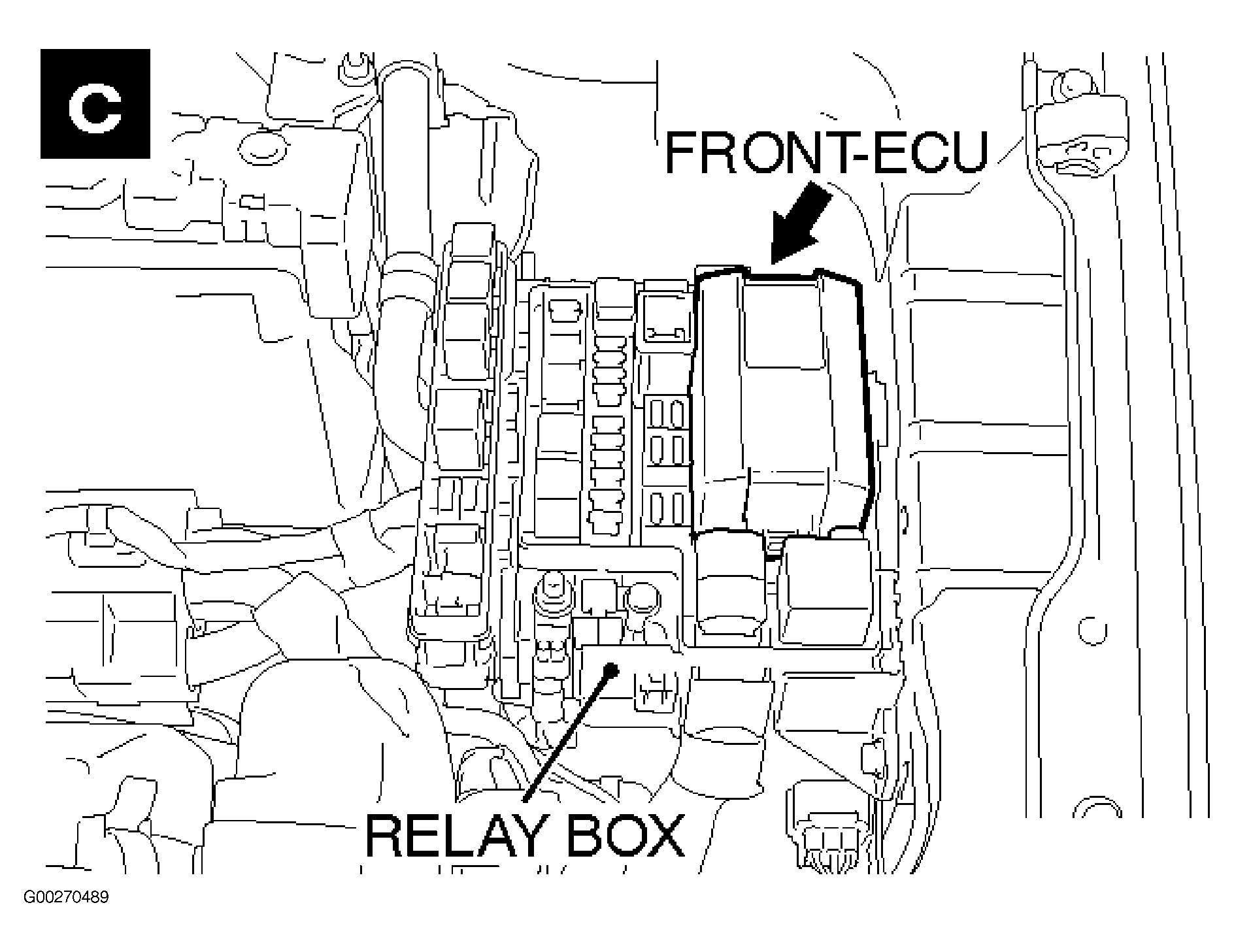 | ABS ECU | At right rear corner of engine compartment. See Figure . |