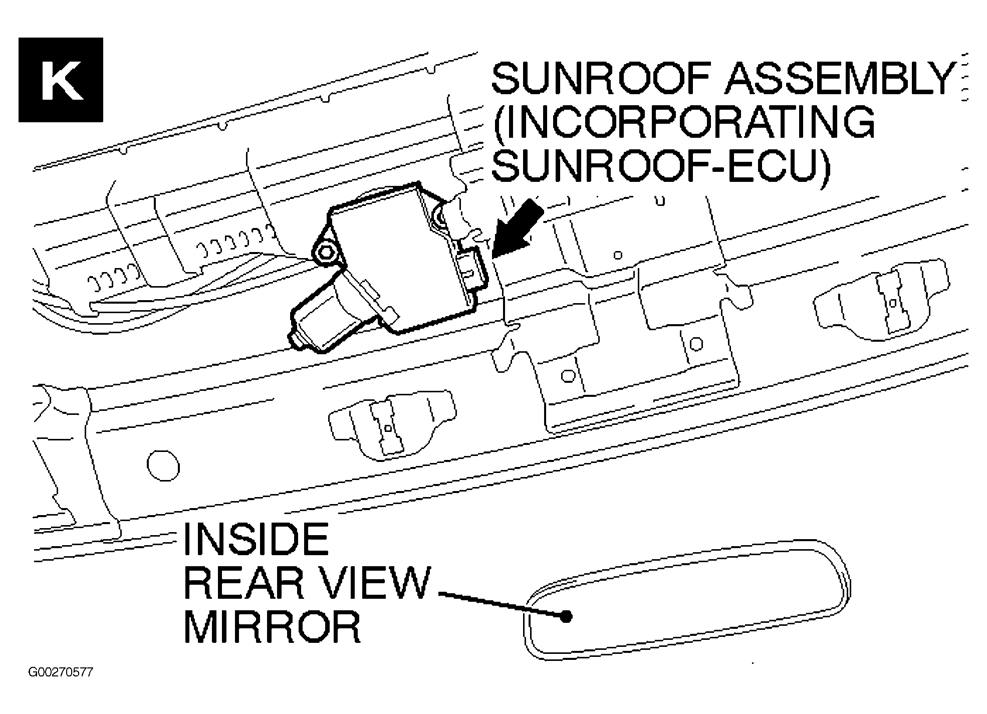 | Sunroof ECU | At front of sunroof opening. See Figure . |
