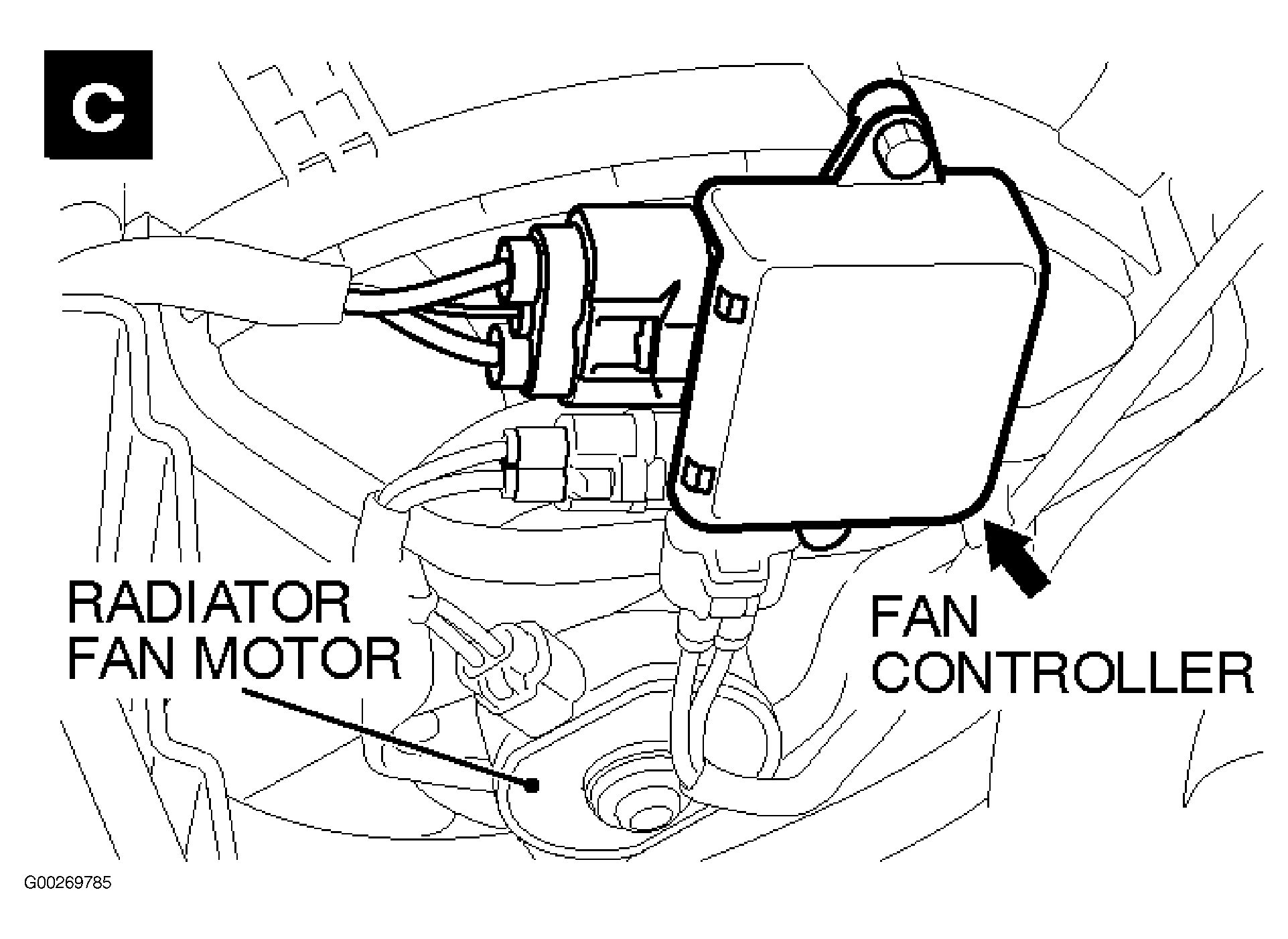 | Fan Controller | On fan shroud, at left front of engine compartment. See Figure . |