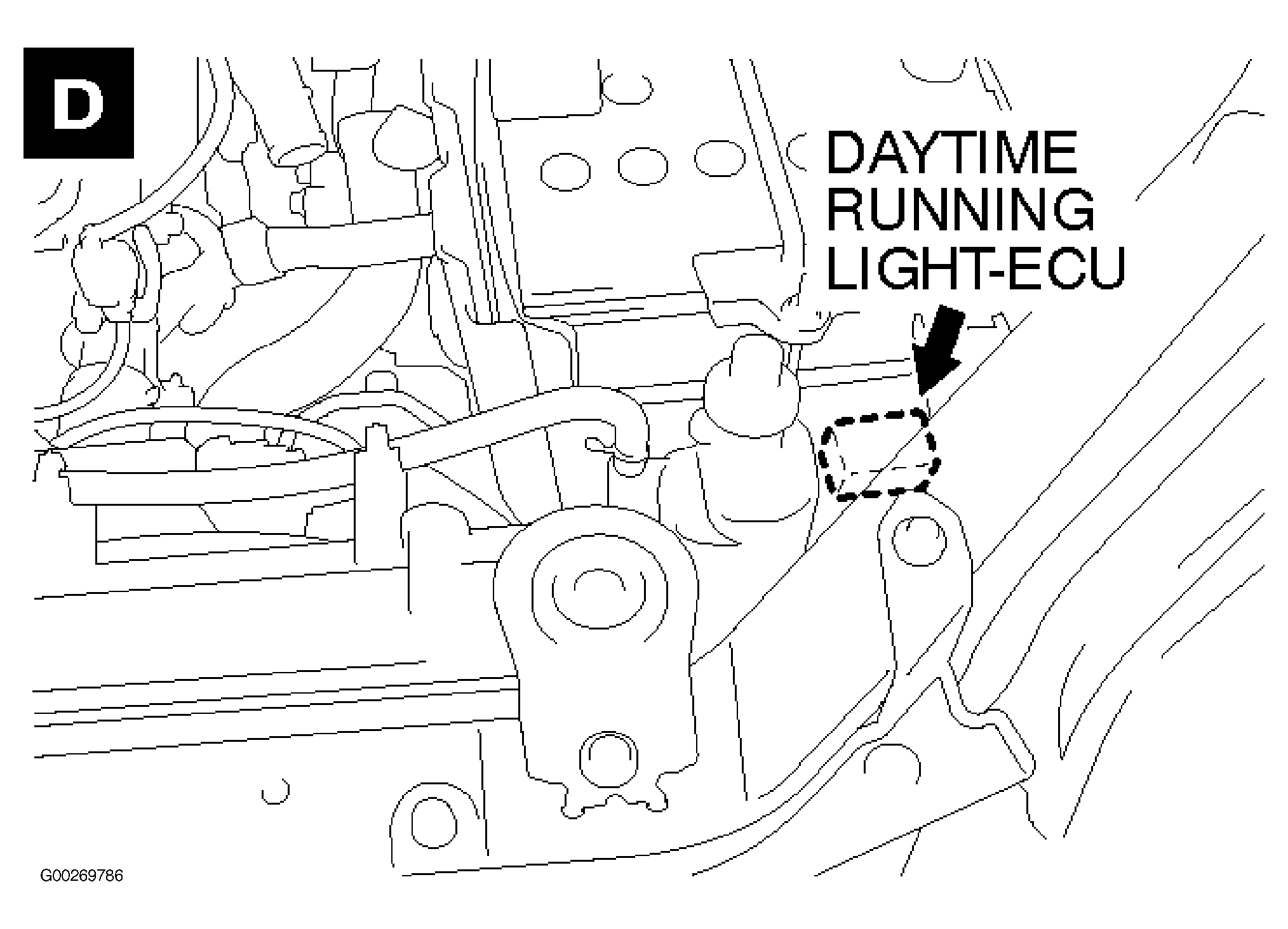 | Daytime Running Light-ECU | At left front corner of engine compartment. See Figure . |
