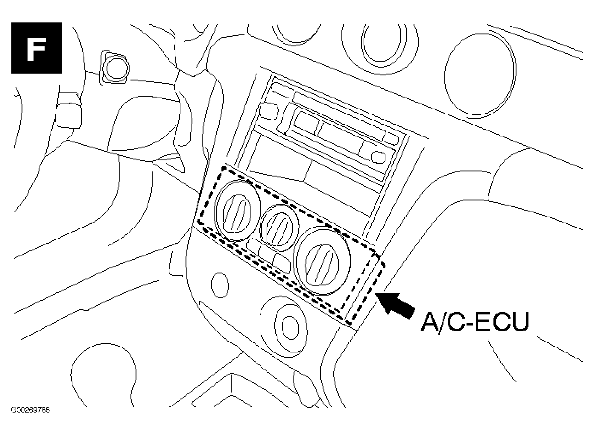 | A/C-ECU | Behind center of dash, below radio. See Figure . |