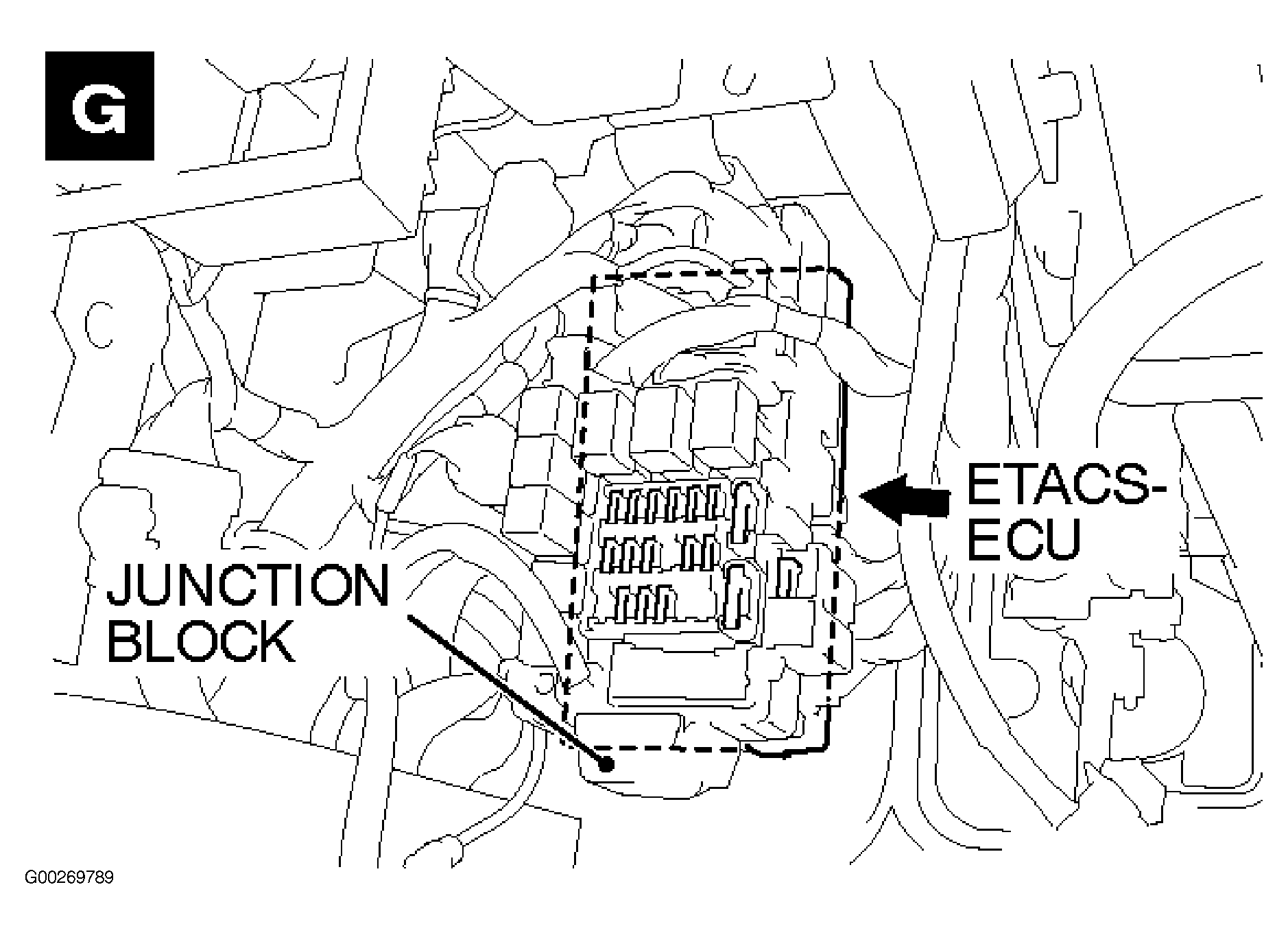 | ETACS-ECU | On rear of junction block, behind left side of dash. See Figure . |
