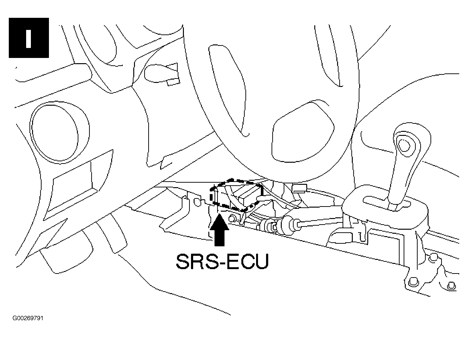 | SRS-ECU | Behind lower center of dash. See Figure . |