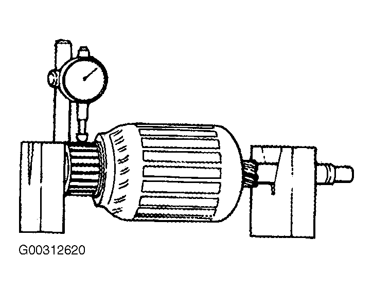 - Place the armature on a pair of V- blocks and check the runout by using a dial gauge. See Fig 1 . See STARTER SPECIFICATIONS .
