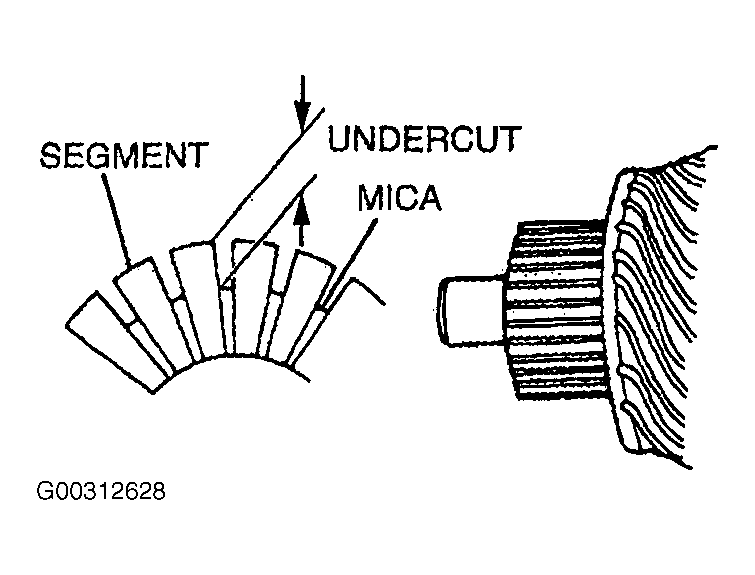 - Replace commutator if runout, diameter or undercut depth is not within specification.