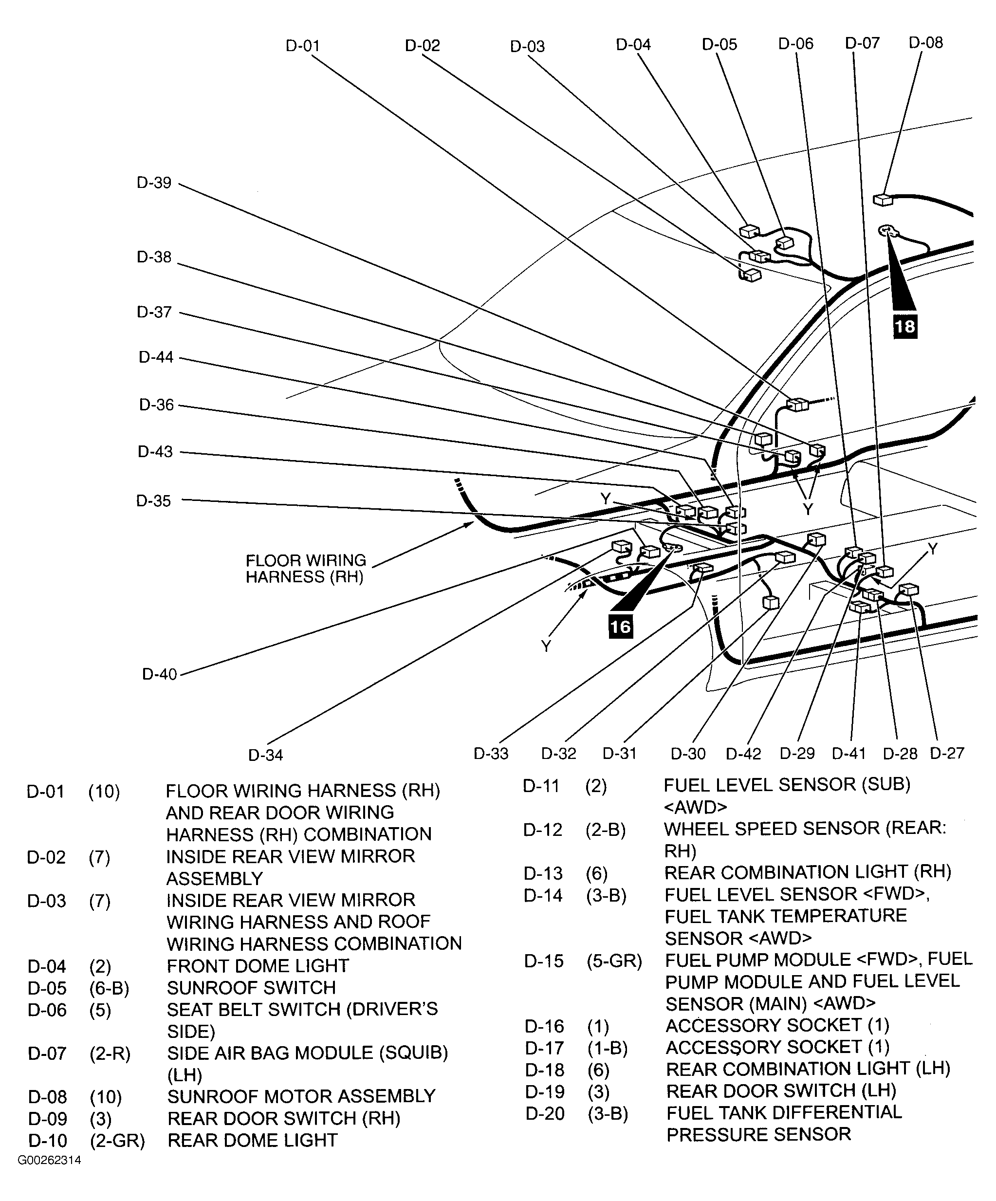 | Occupant Classification ECU (D-43) | Under right front seat. See Figure . |