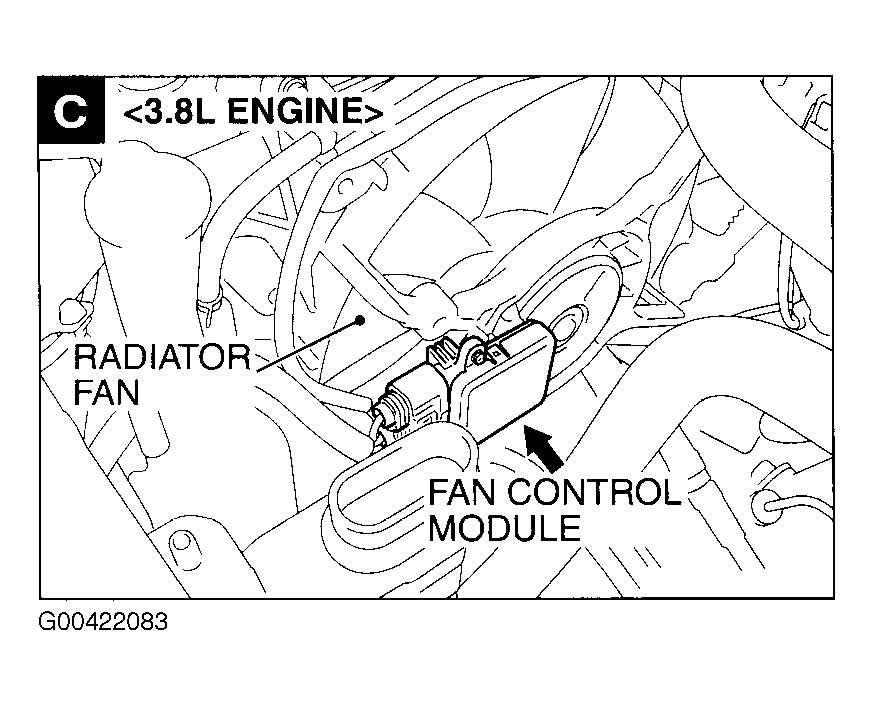 Fan Control Module Attached to cooling fan shroud. See Figure.