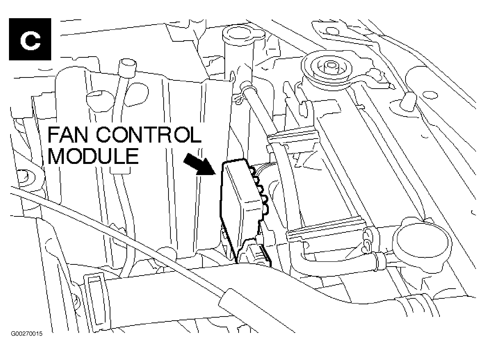 | Fan Control Module | On fan shroud, at left front of engine compartment. See Figure. |