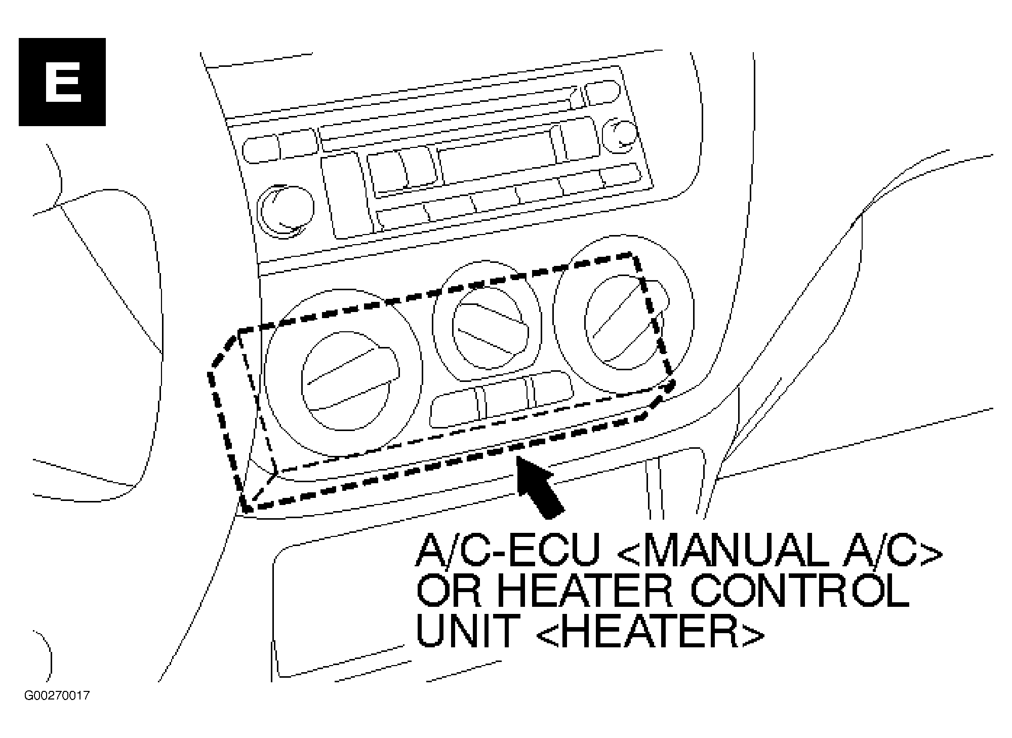 | A/C ECU | Behind center of dash, below radio. See Figure. |