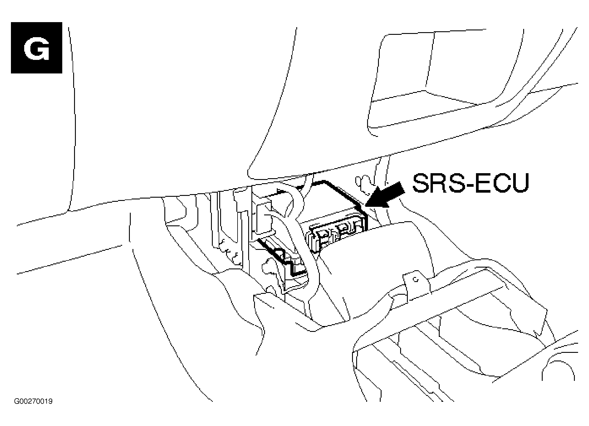 | SRS ECU | Behind lower center of dash. See Figure. |
