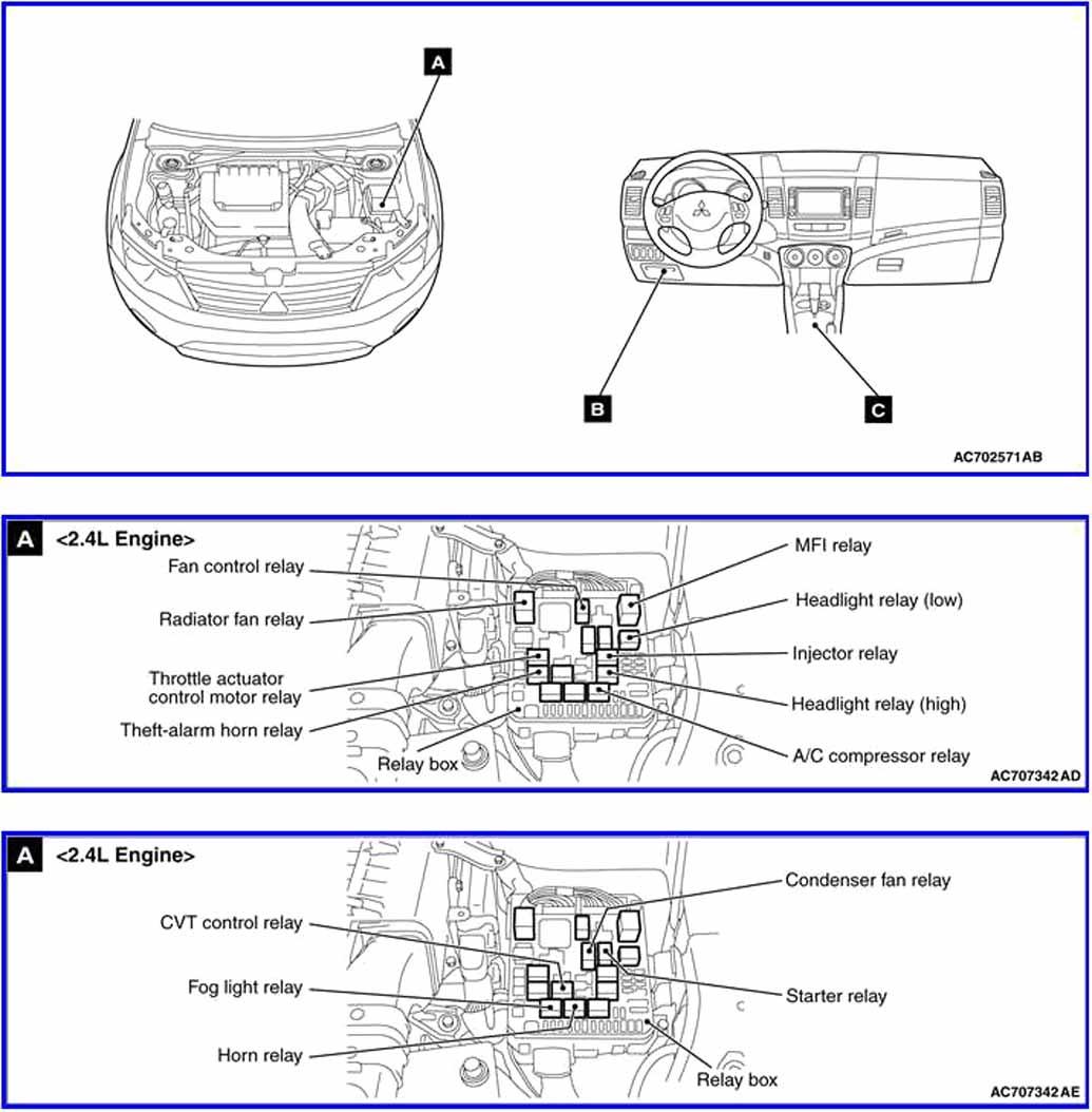 | Auxiliary Relay Box | Left side of engine compartment. |