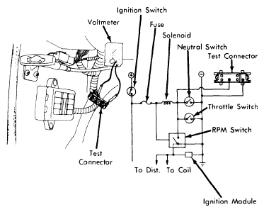 - With clutch pedal depressed, increase engine speed to 3000 RPM. Quickly close throttle valve and check voltage. Voltmeter should read zero (0) during acceleration, 12 volts during deceleration.