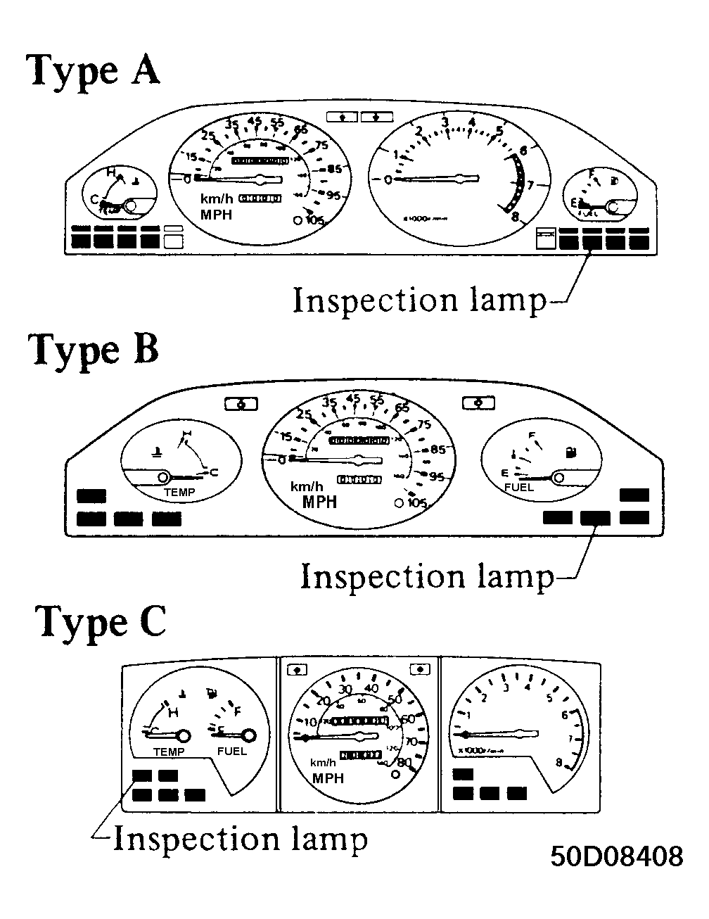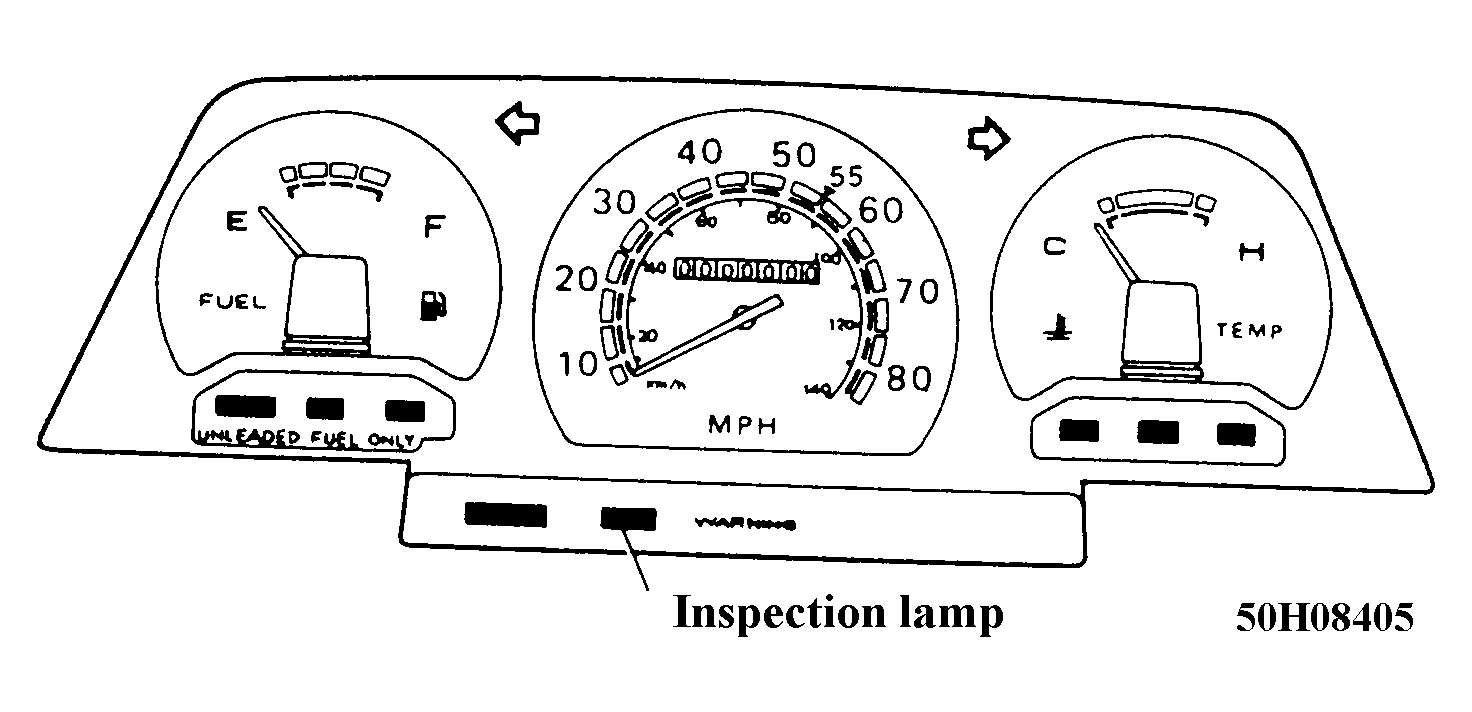 - If bulb is not lit, replace bulb. If lit, start engine and warm to operating temperature. After warming up engine, let it run at 2000 RPM for about 5 minutes. Recheck inspection lamp. If off, go to step 5). If on, go to next step.