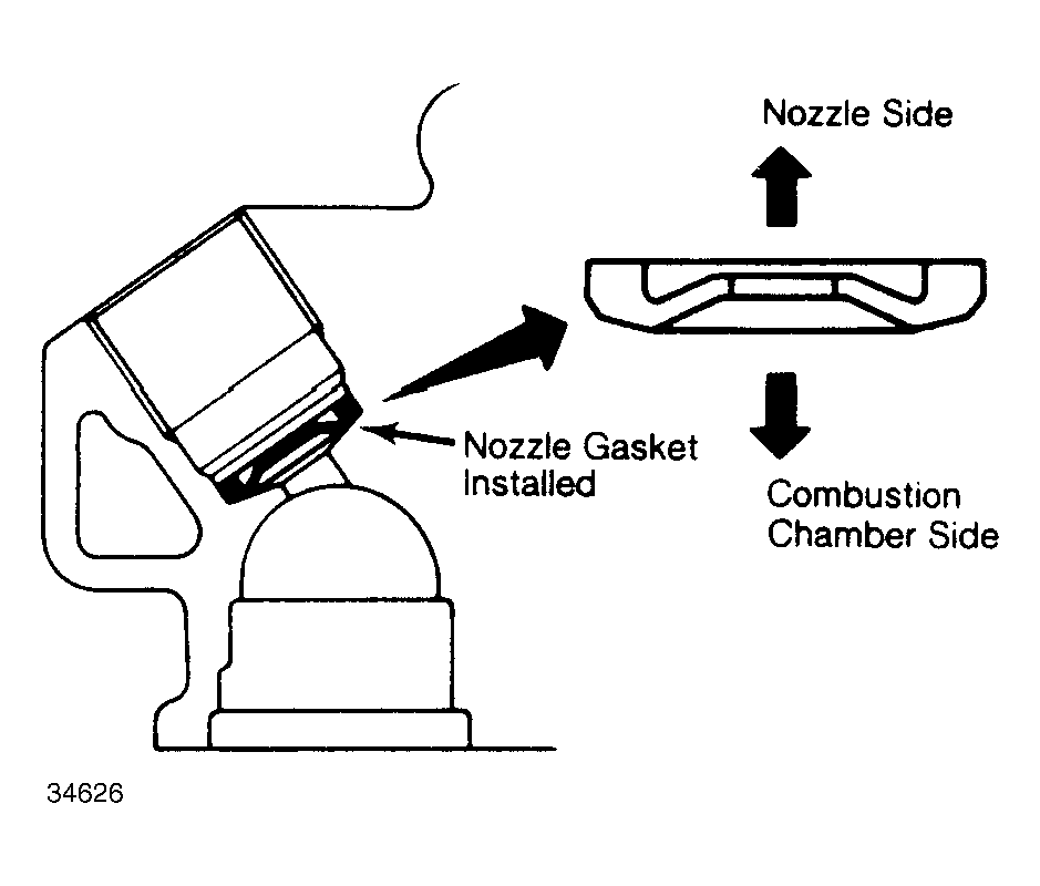 - Clean nozzle holder mounting area of cylinder head. Fit a new nozzle gasket to the nozzle before mounting in head. See Fig 1 .
