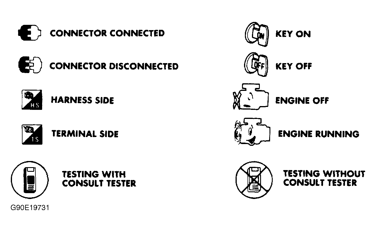 NOTE: When CODE CHART step indicates CHECK COMPONENT, see indicated component in I - SYS/COMP TESTS article in the ENGINE PERFORMANCE Section. For trouble code chart symbol identification, see Figure . To identify ECU connector terminals, see WIRING DIAGRAMS article in the ENGINE PERFORMANCE Section.