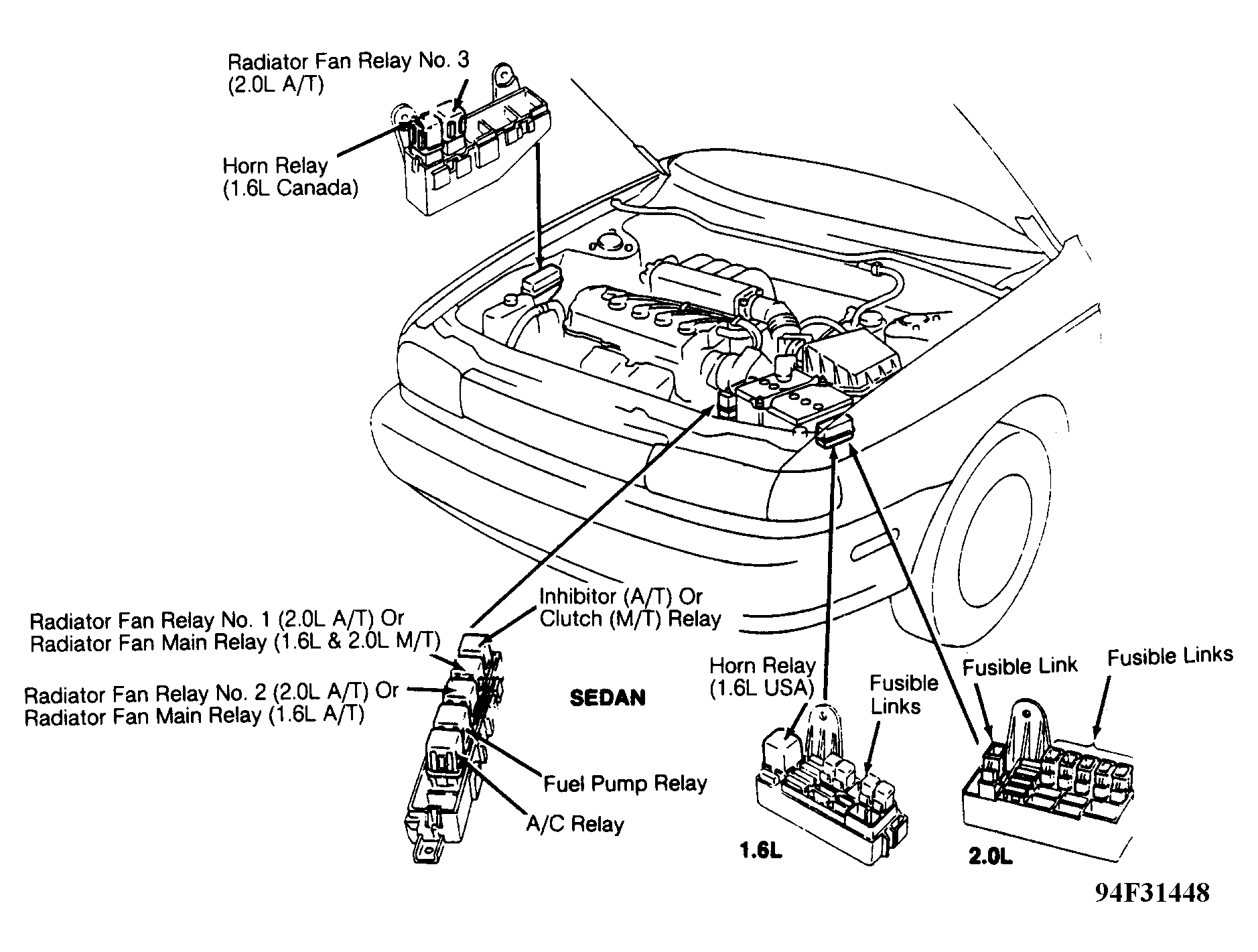 | Fusible Links (Sedan) | In engine compartment fuse/relay block. See Figure . |