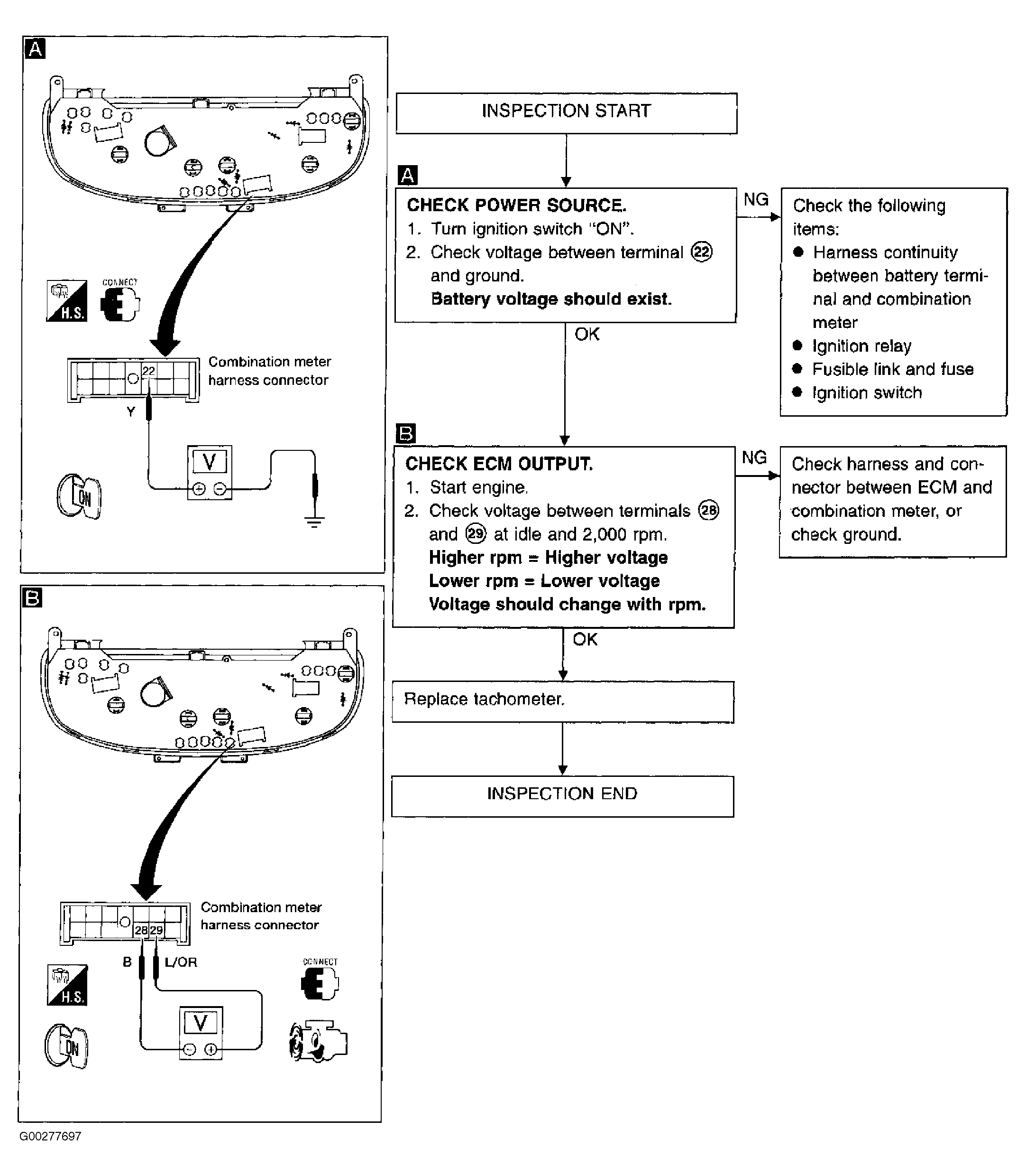 Fig 1: Checking Tachometer (Sentra & 200SX)
