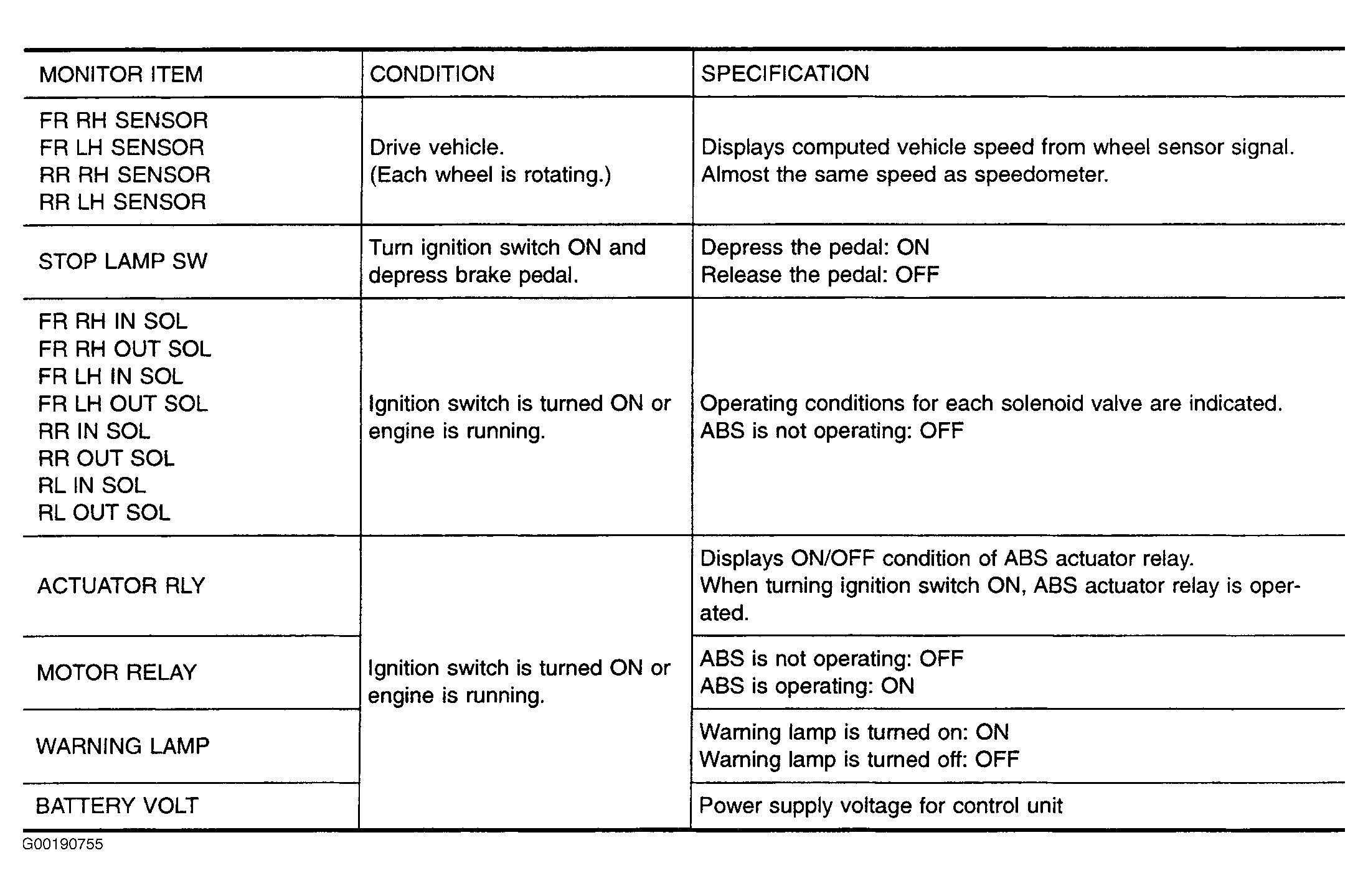 Home >> Nissan-Datsun >> 2002 >> Sentra SE-R, Automatic >> Repair and Diagnosis >> Brakes >> Traction Control >> Anti-Lock Brake System >> Scan Tool Usage >> Using Consult-II >> Data Monitor Procedure