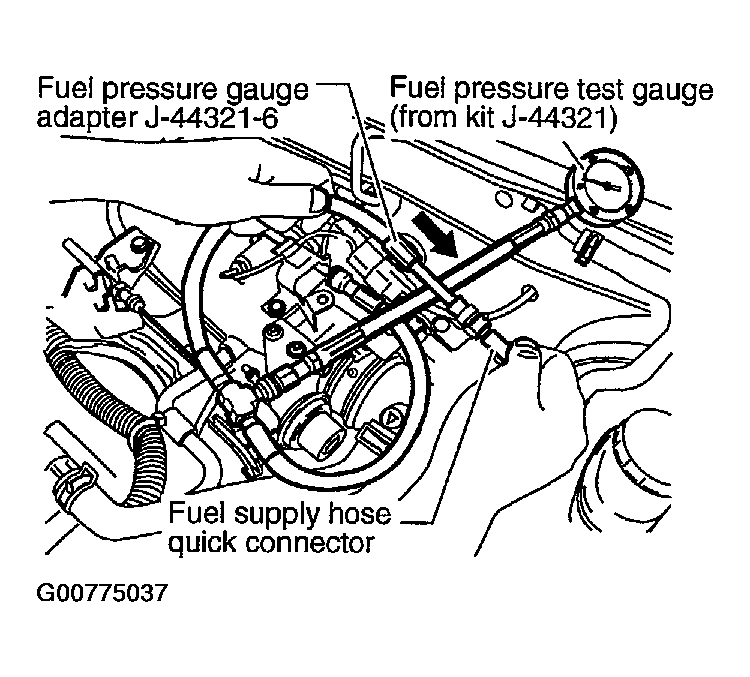 - Use Fuel Pressure Gauge Kit J-44321 and Fuel Pressure Adapter J-44321-6 to check fuel pressure.