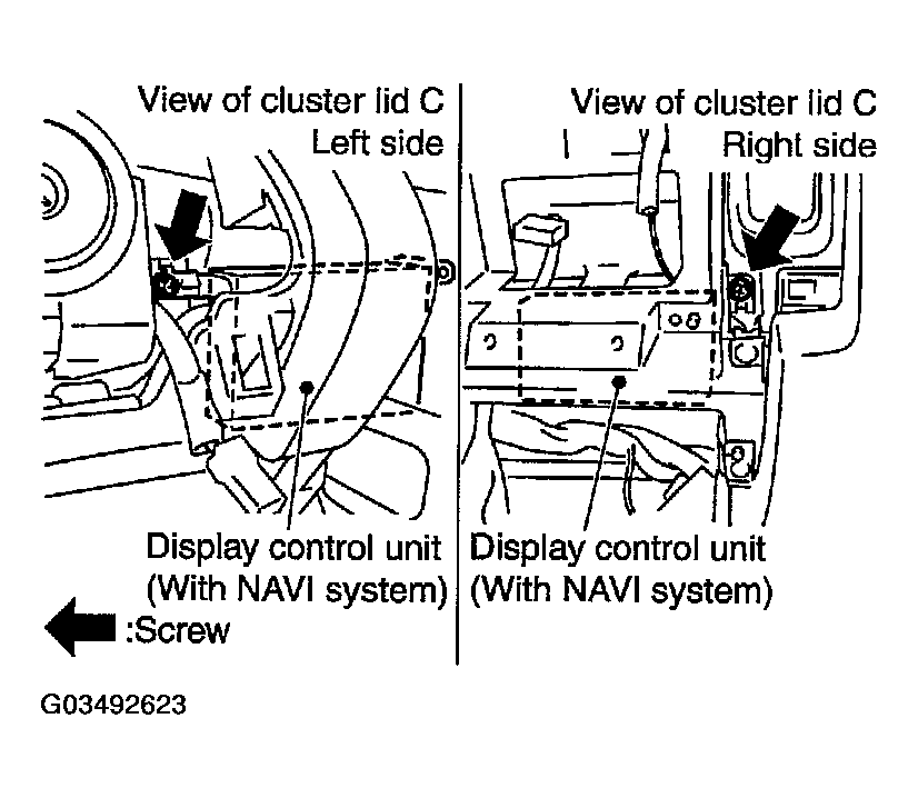 1. Remove cluster lid C, Refer to "INSTRUMENT PANEL ASSEMBLY ".