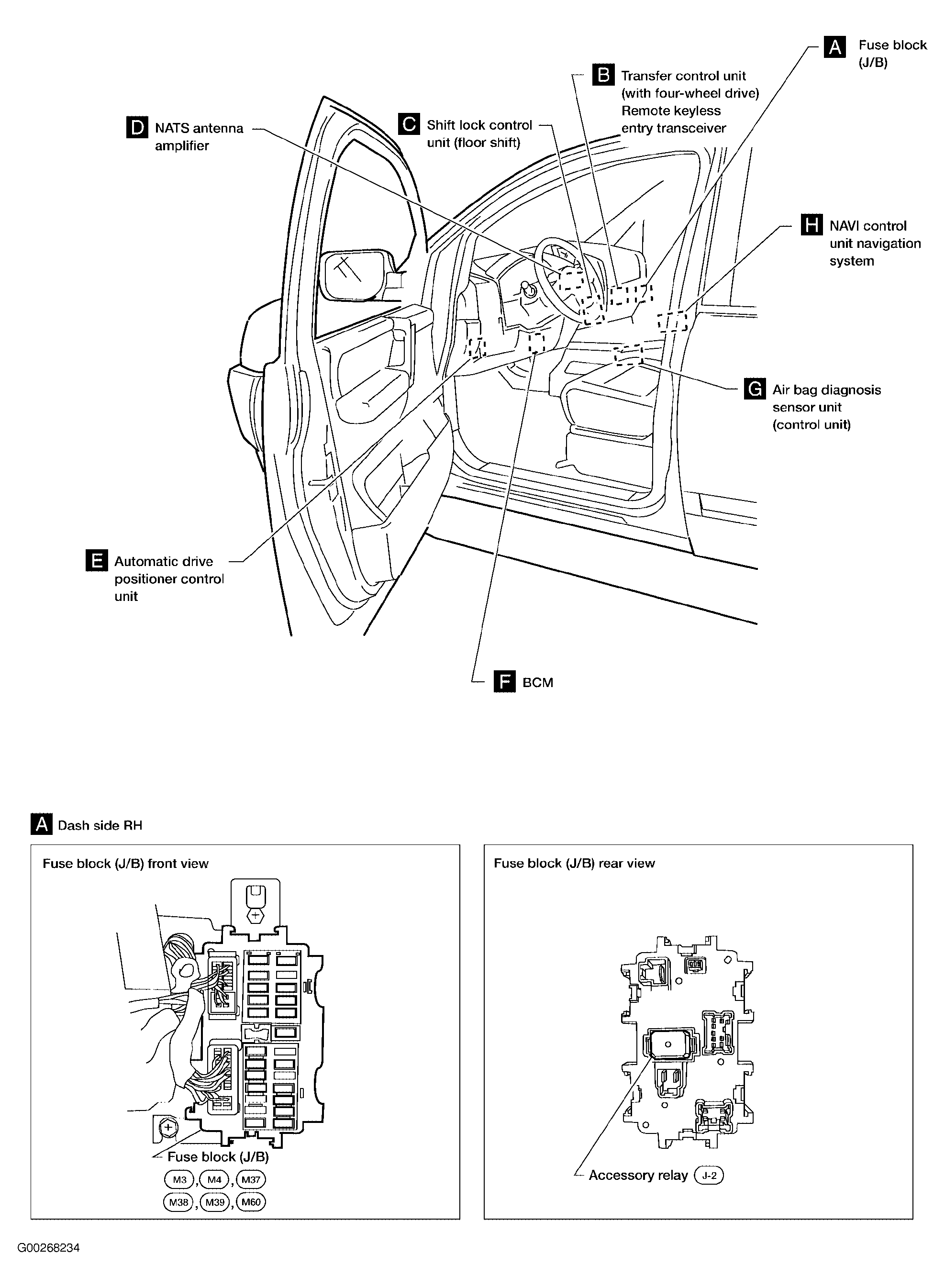| Fuse Block (J/B) | Behind right end of dash.Figure . |