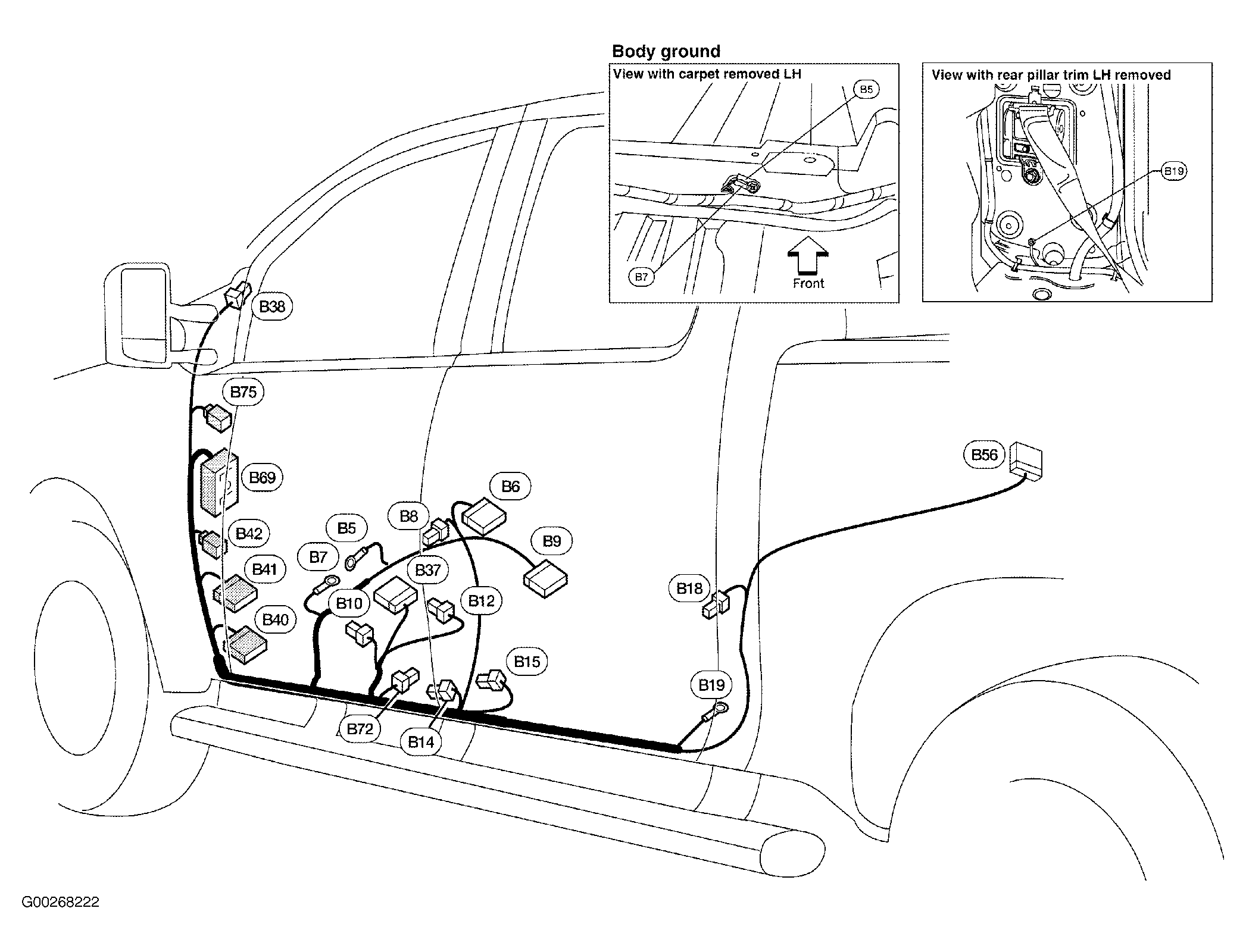 | Side Air Bag Module (Left Front) (King Cab) (B10) | Under left front seat. See Figure . |