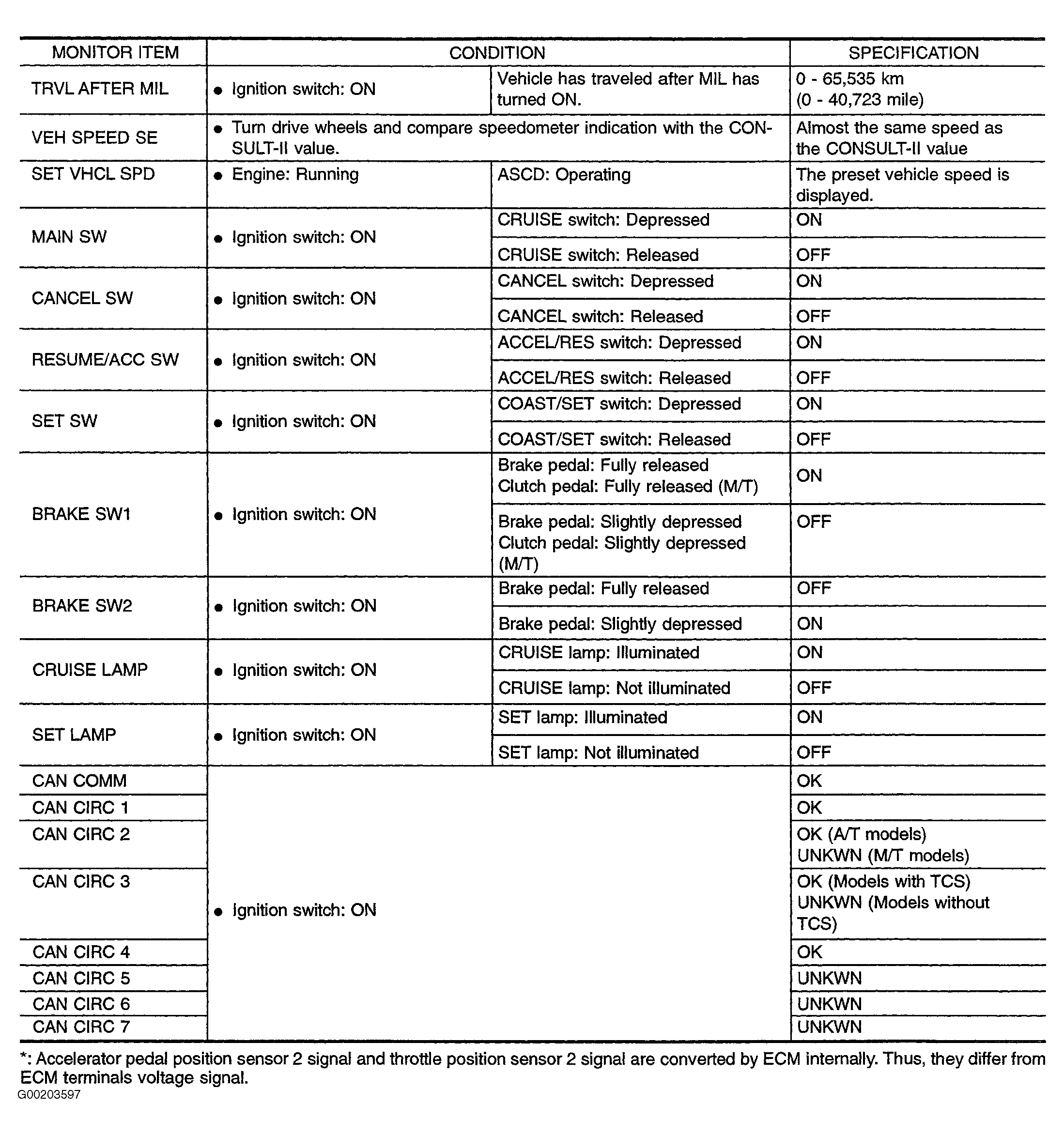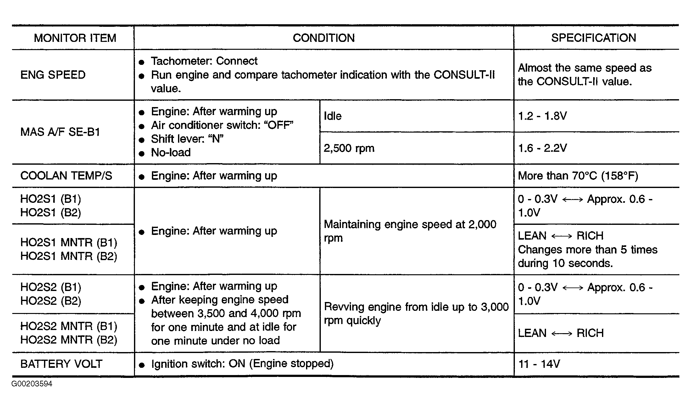 Home >> Nissan-Datsun >> 2003 >> Pathfinder LE, RWD >> Repair and Diagnosis >> Engine Performance >> System >> Engine Controls Self-Diagnostics - Pathfinder >> Scan Tool Usage >> Consult-II >> Data Monitor Mode Reference Values