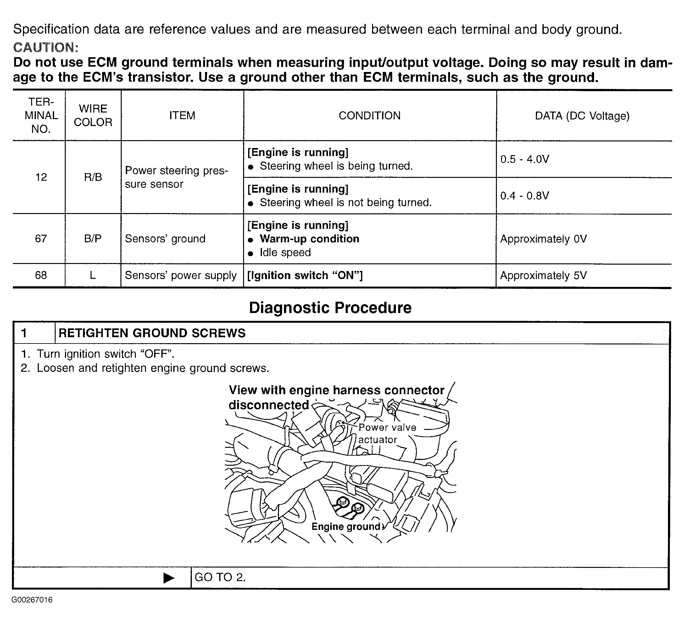 Home >> Nissan-Datsun >> 2003 >> Sentra SE-R, Automatic >> Repair and Diagnosis >> Engine Performance >> System >> Engine Controls - System & Component Testing >> Engine Sensors & Switches >> Power Steering Pressure Switch System Test >> Pathfinder