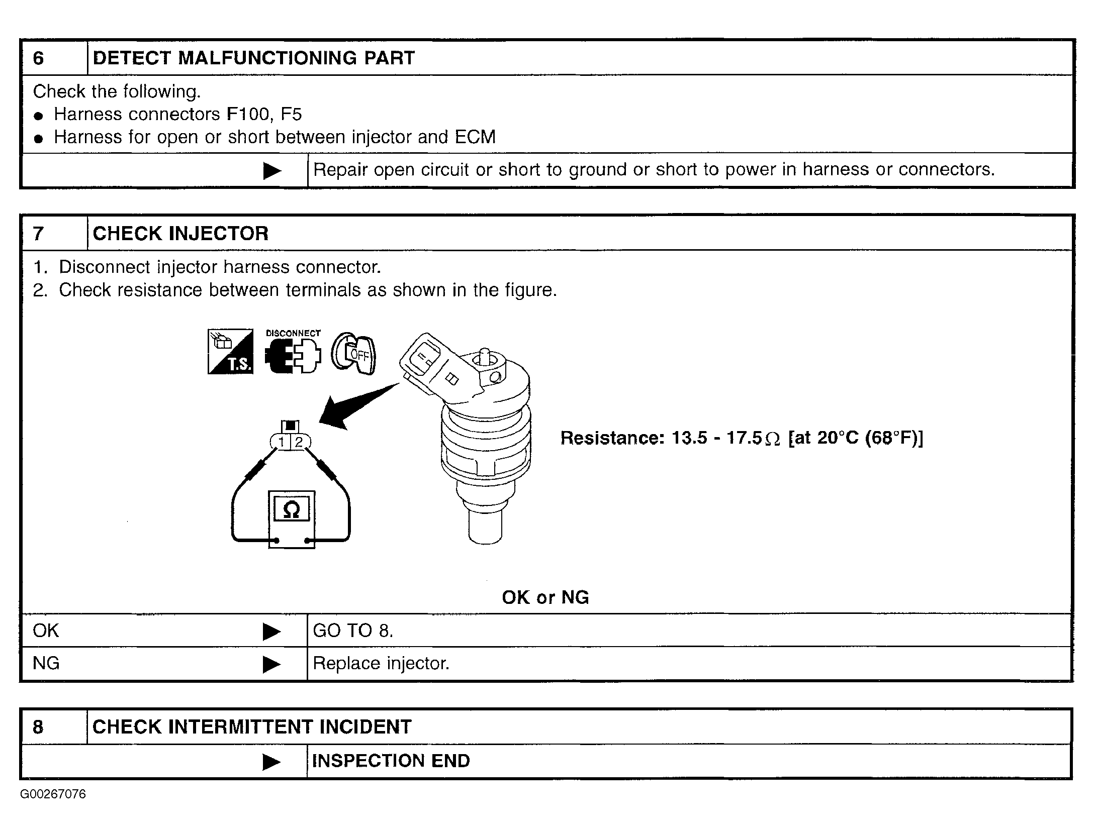 For injector circuit test procedure, see Fig 1-Fig 5 . If no problem is indicated at this time, see INTERMITTENTS in TROUBLE SHOOTING - NO CODES article. For removal and installation of components, see appropriate REMOVAL & INSTALLATION article.