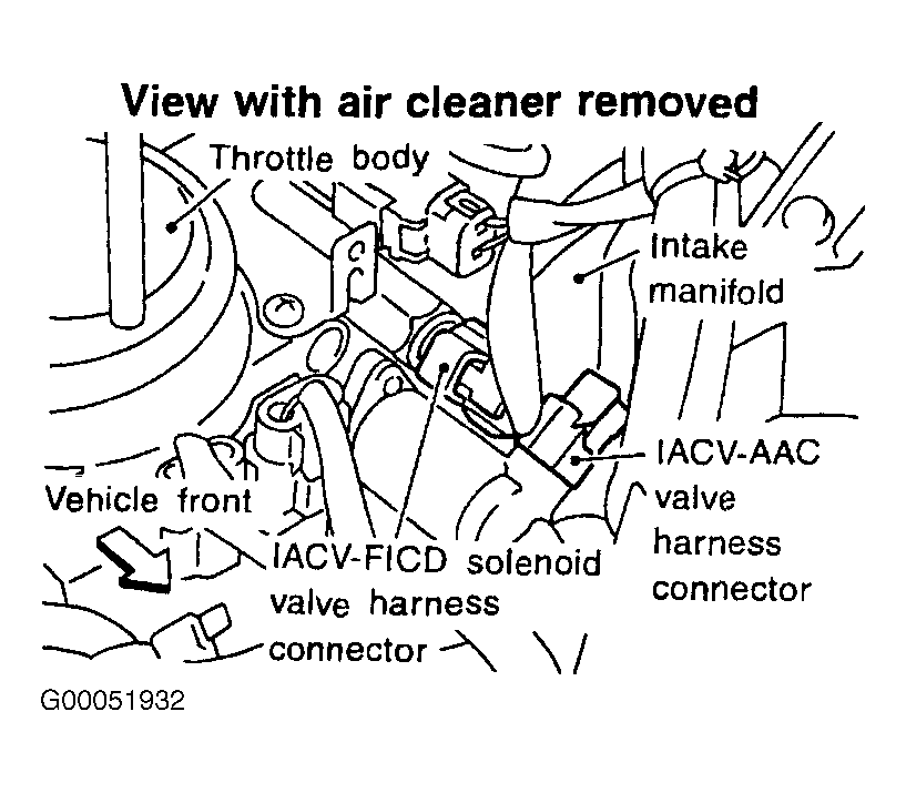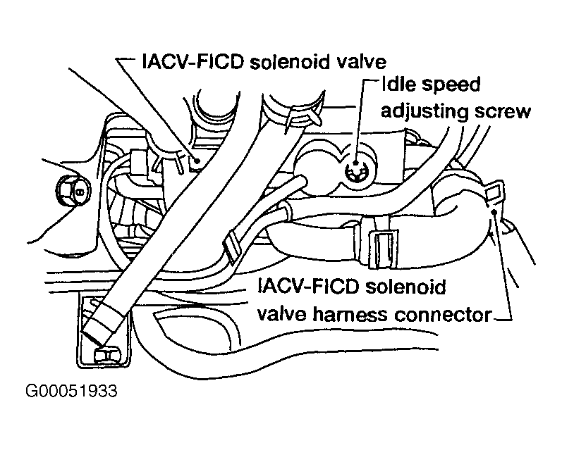 • Check for open or short in circuits between ground and IACV-FICD solenoid valve. See ENGINE PERFORMANCE in SYSTEM WIRING DIAGRAMS article in ELECTRICAL.