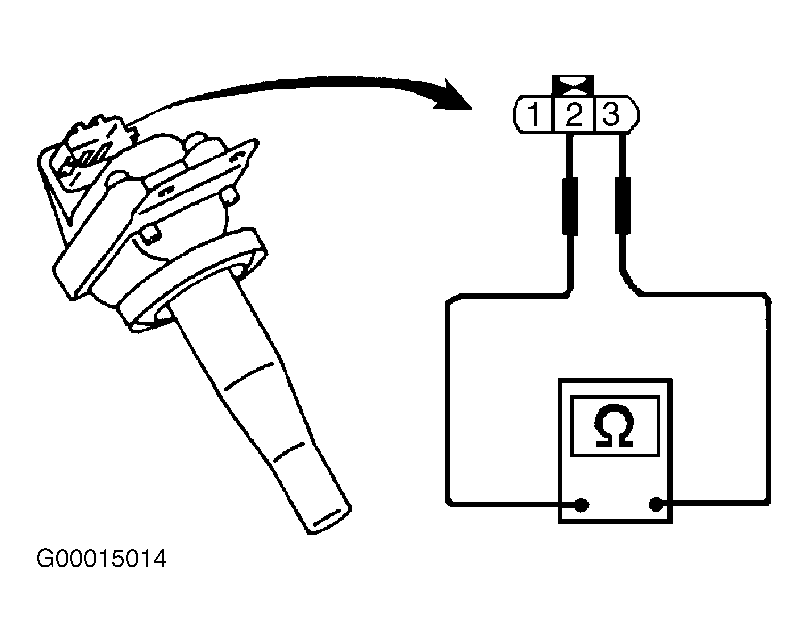 - Turn ignition off. Connect any disconnected harness connectors. Disconnect suspect ignition coil 3-pin harness connector. Turn ignition on. Measure voltage between ground and ignition coil harness connector terminal No. 3 (Red wire). See Figure. If battery voltage does not exist, go to next step. If battery voltage exists, go to step 16.