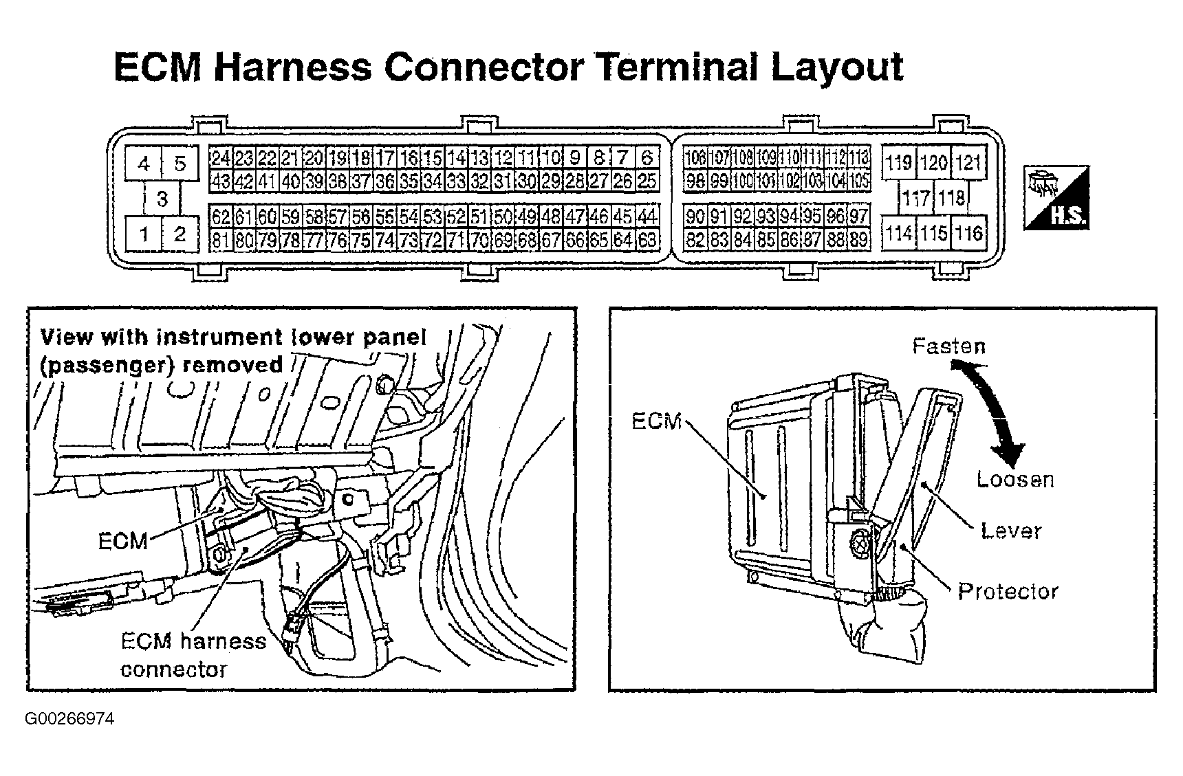Fig 9: Locating Engine Control Module & Connector Terminal Layout (350Z)