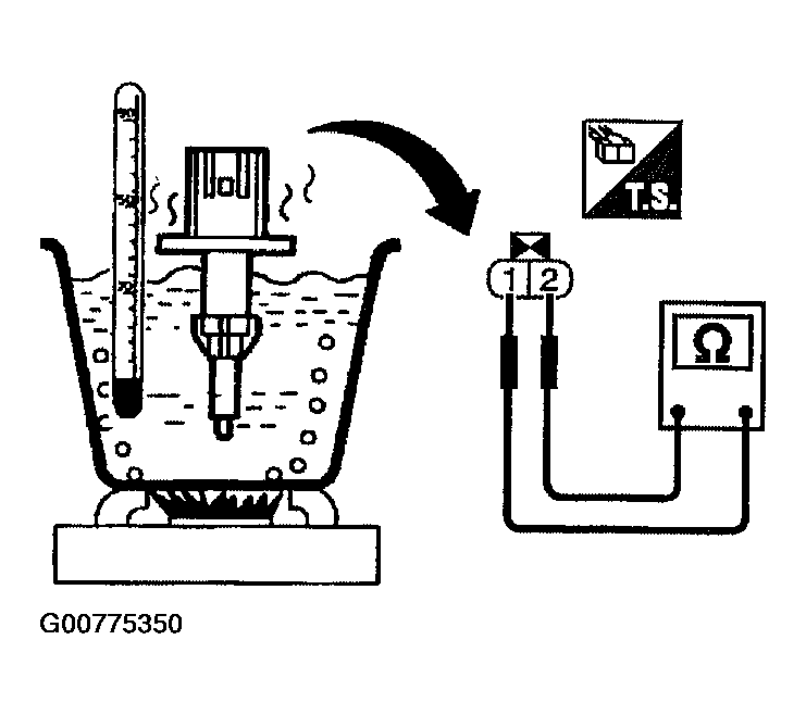 - Check resistance between engine coolant temperature sensor terminals 1 and 2 as shown in Fig 1