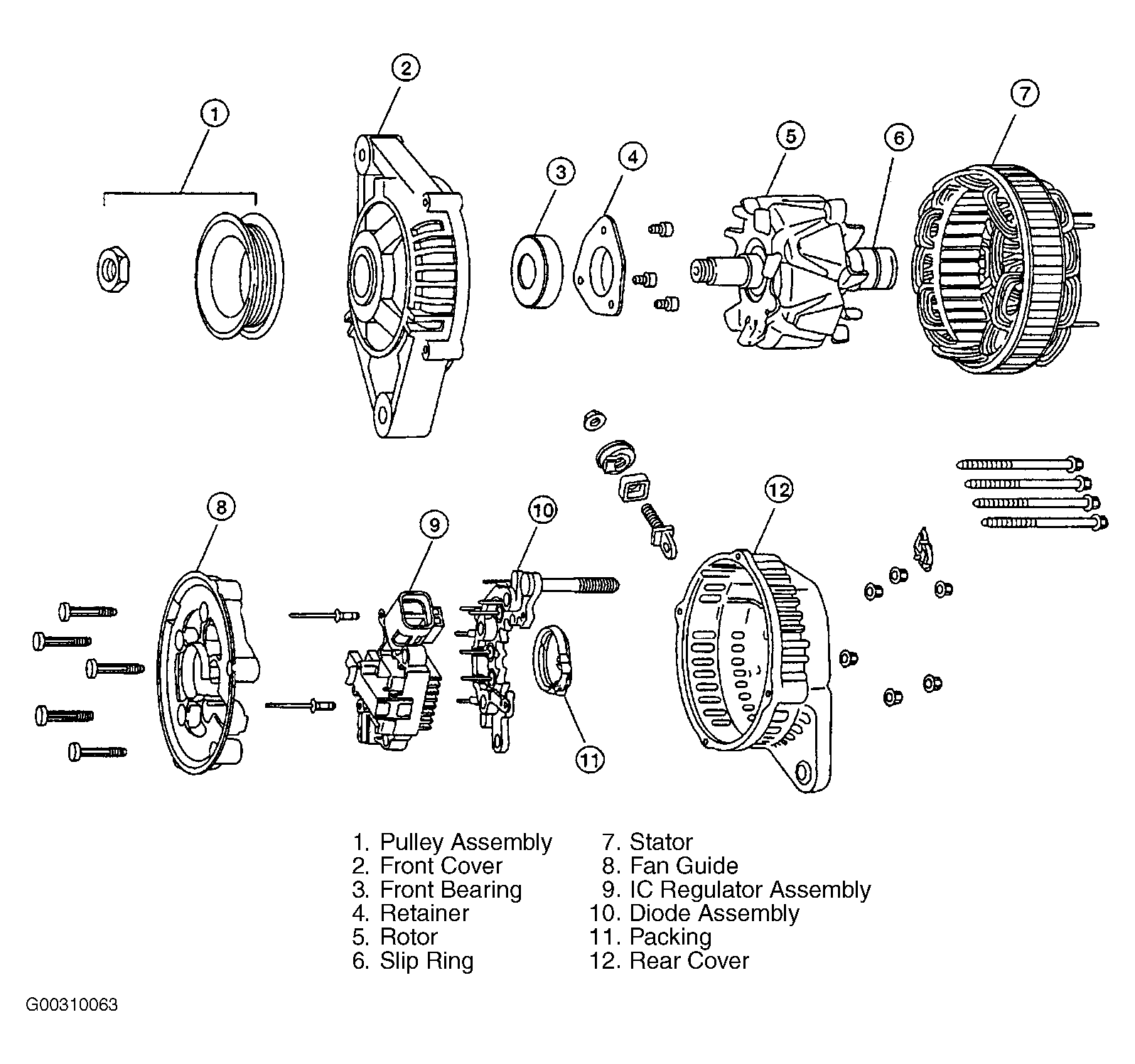 Fig 2: Exploded view of Generator (2.5L)