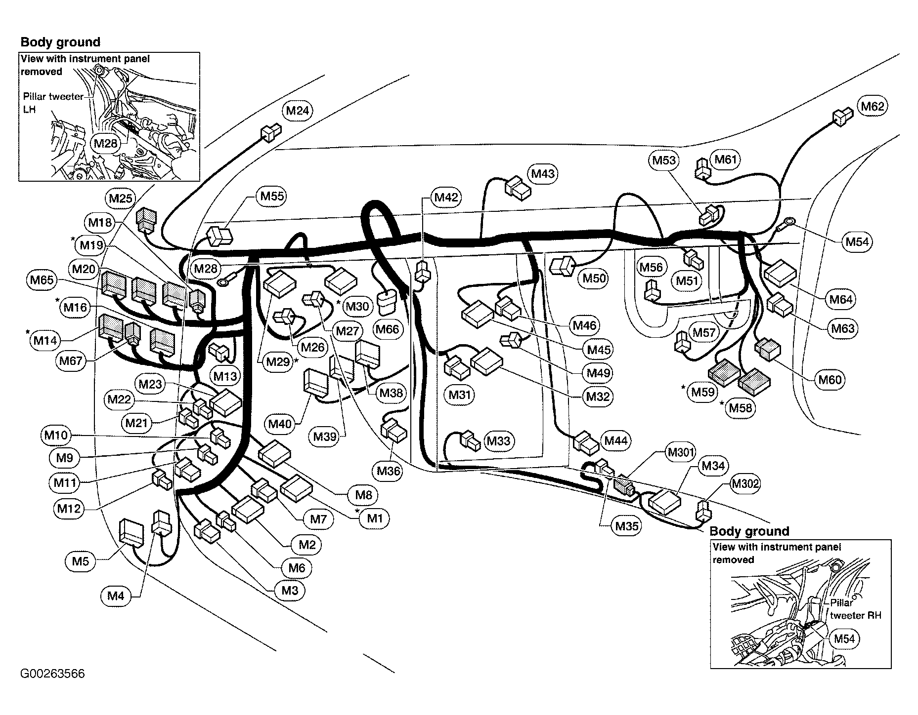 | M64 (White, 16 Pin) | Behind right kick panel. See Figure . |