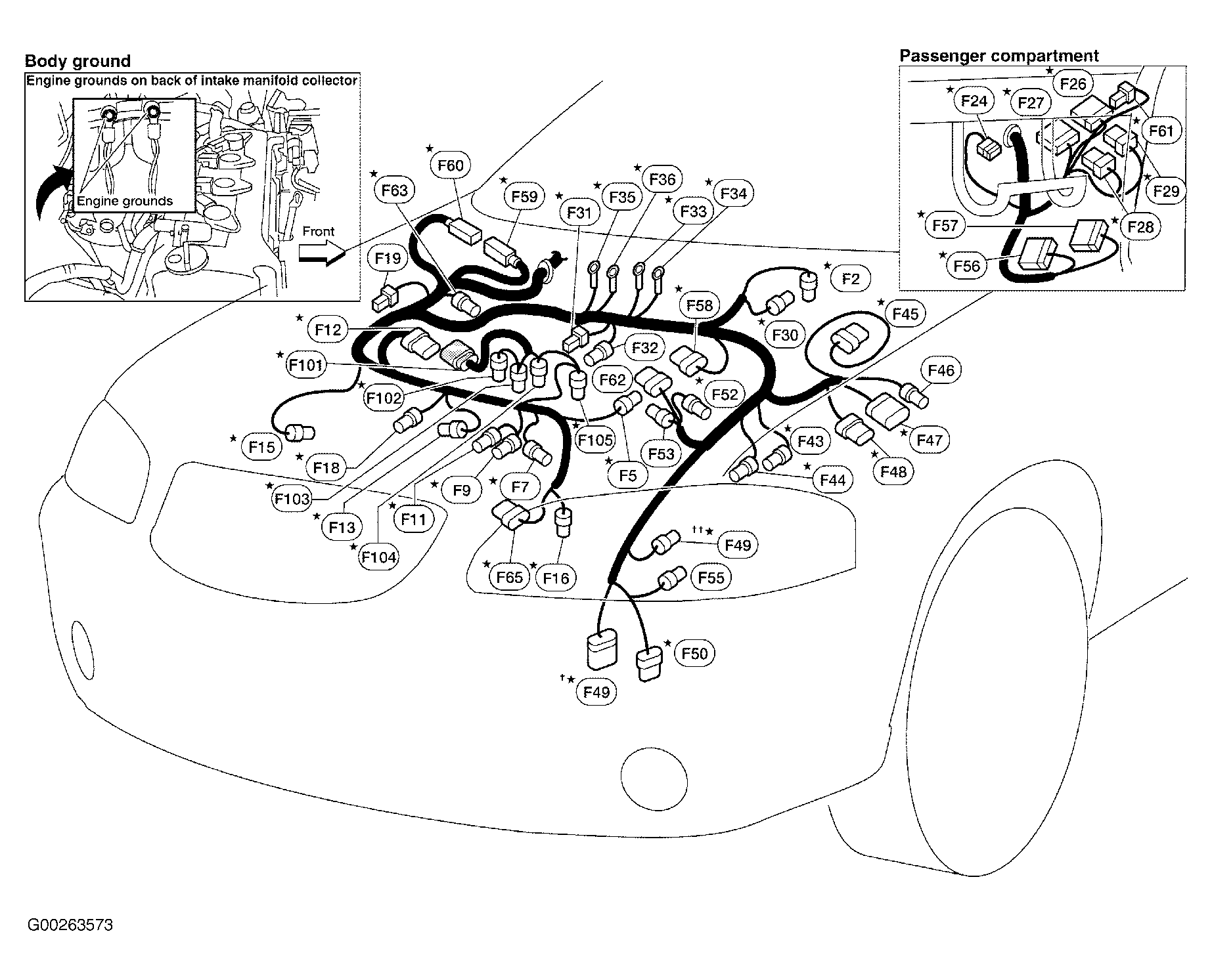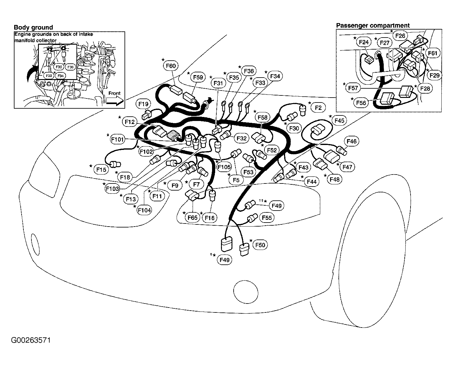 | F47 (1.8L ULEV) (Gray, 9 Pin) | Left side of engine compartment. See Figure . |