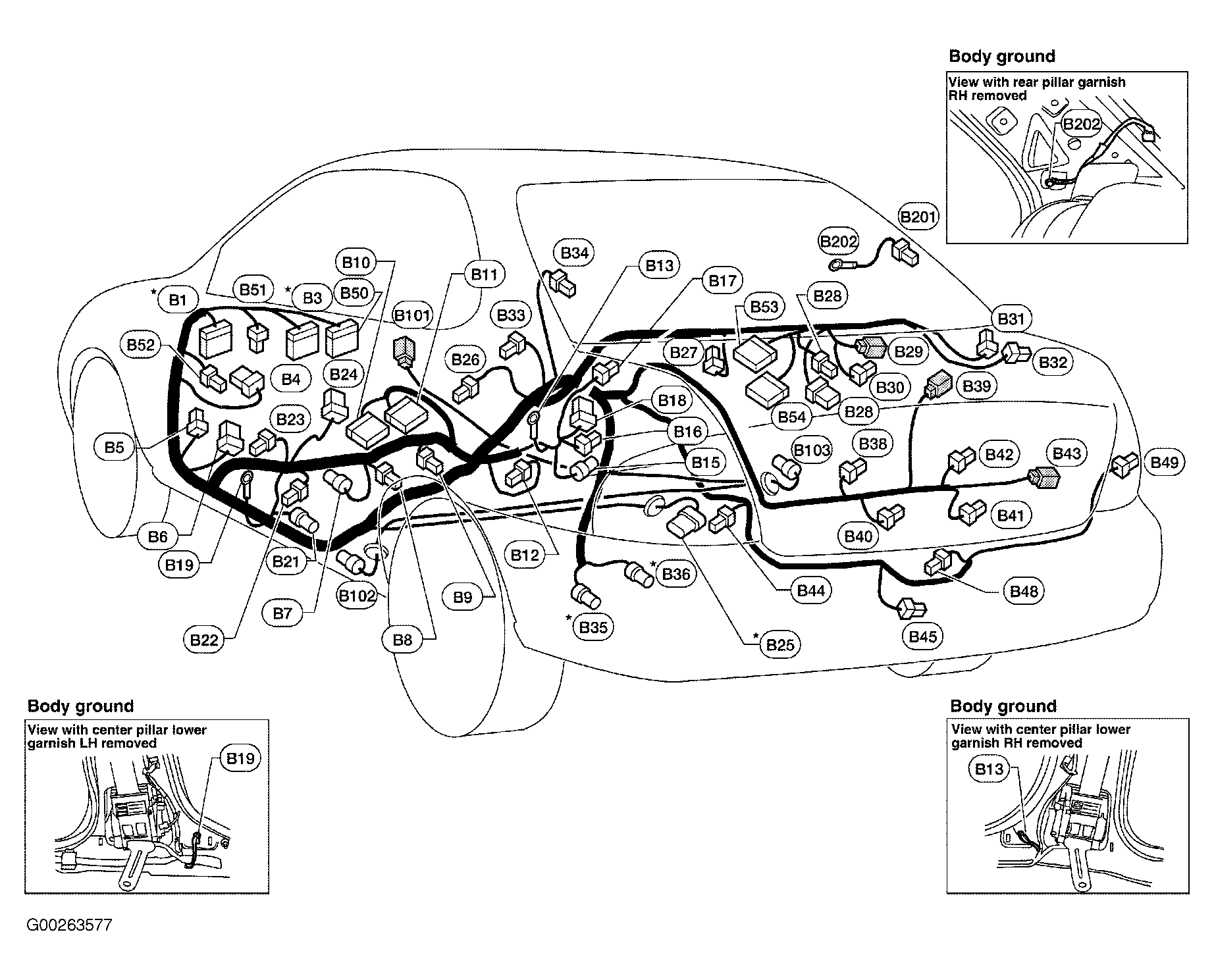 | B24 (White, 8 Pin) | Left "B" pillar. See Figure . |