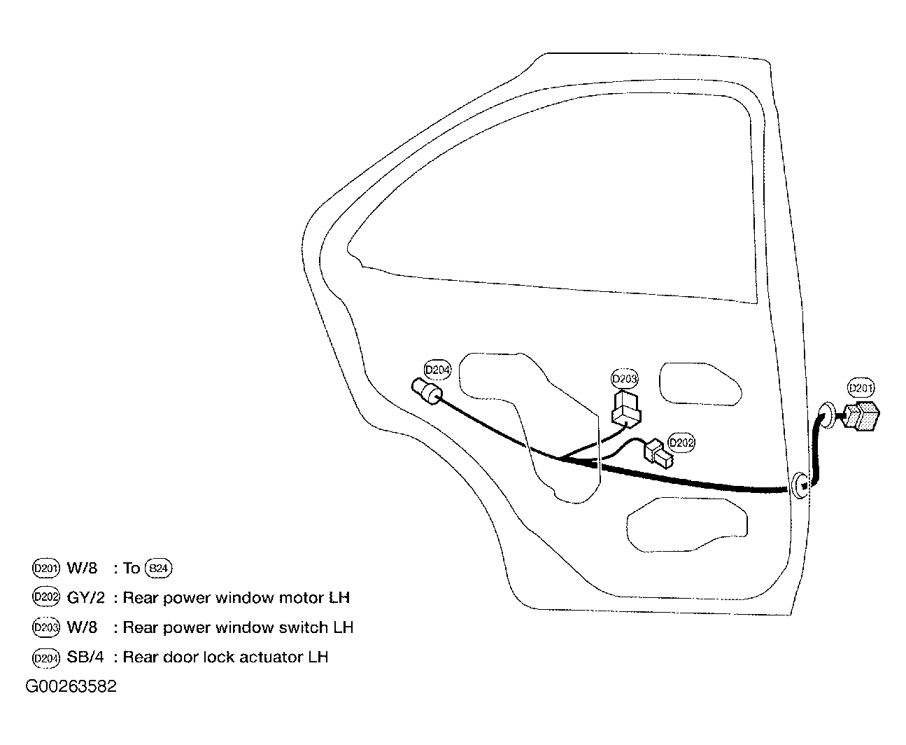 | D201 (White, 8 Pin) | Left "B" pillar. See Figure . |