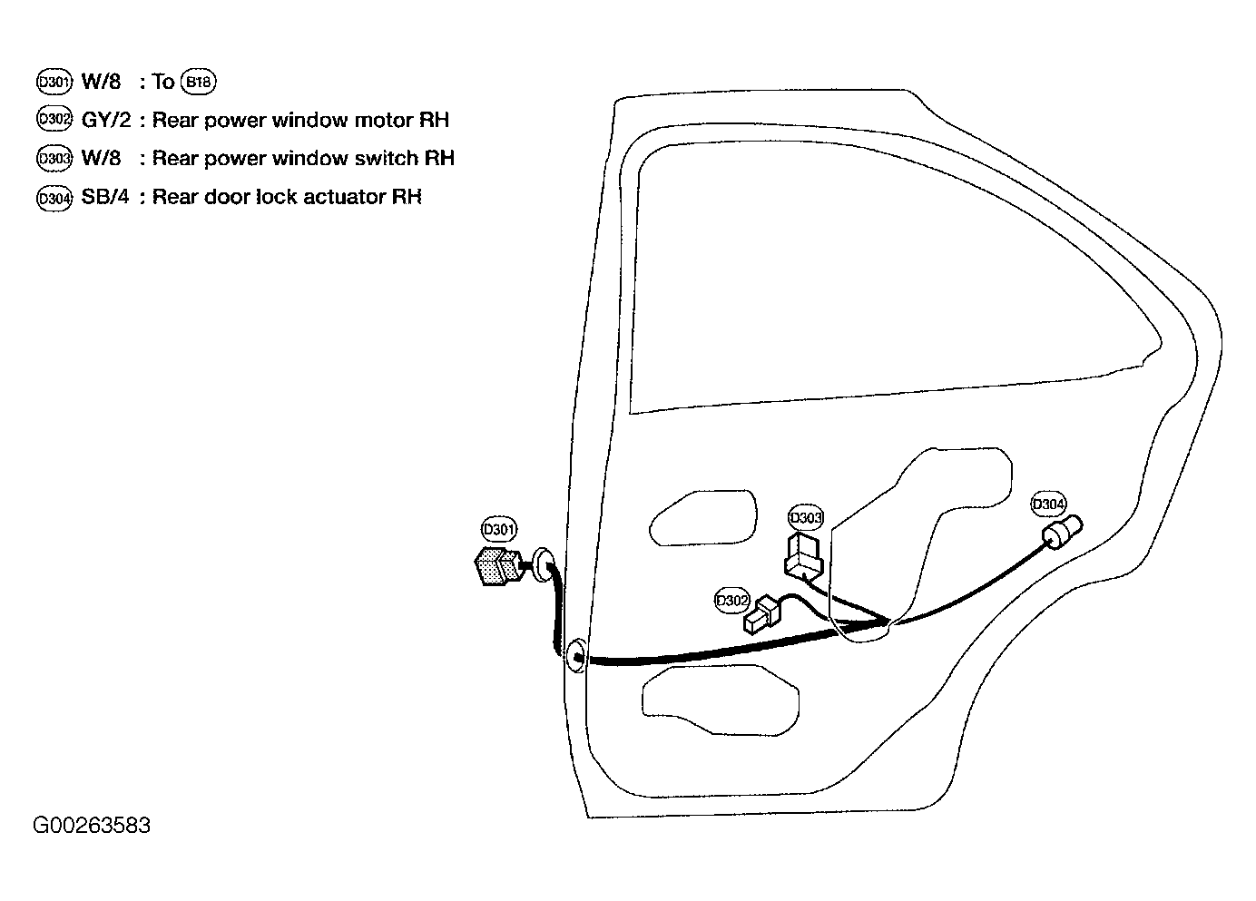 | D301 (White, 8 Pin) | Right "B" pillar. See Figure . |