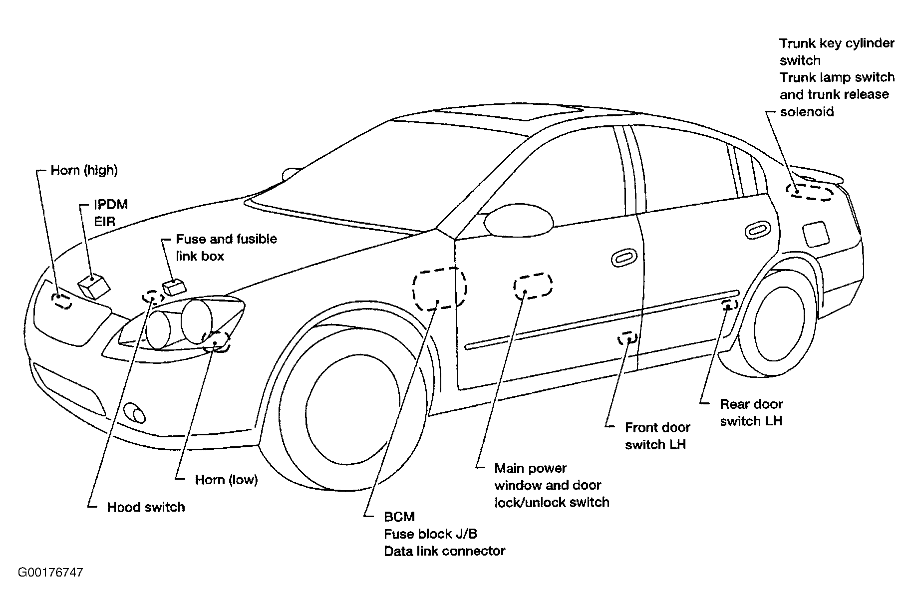 | Door Switch, Left Rear | Under Left Rear Door Striker, See Fig 1 and Fig 2 |