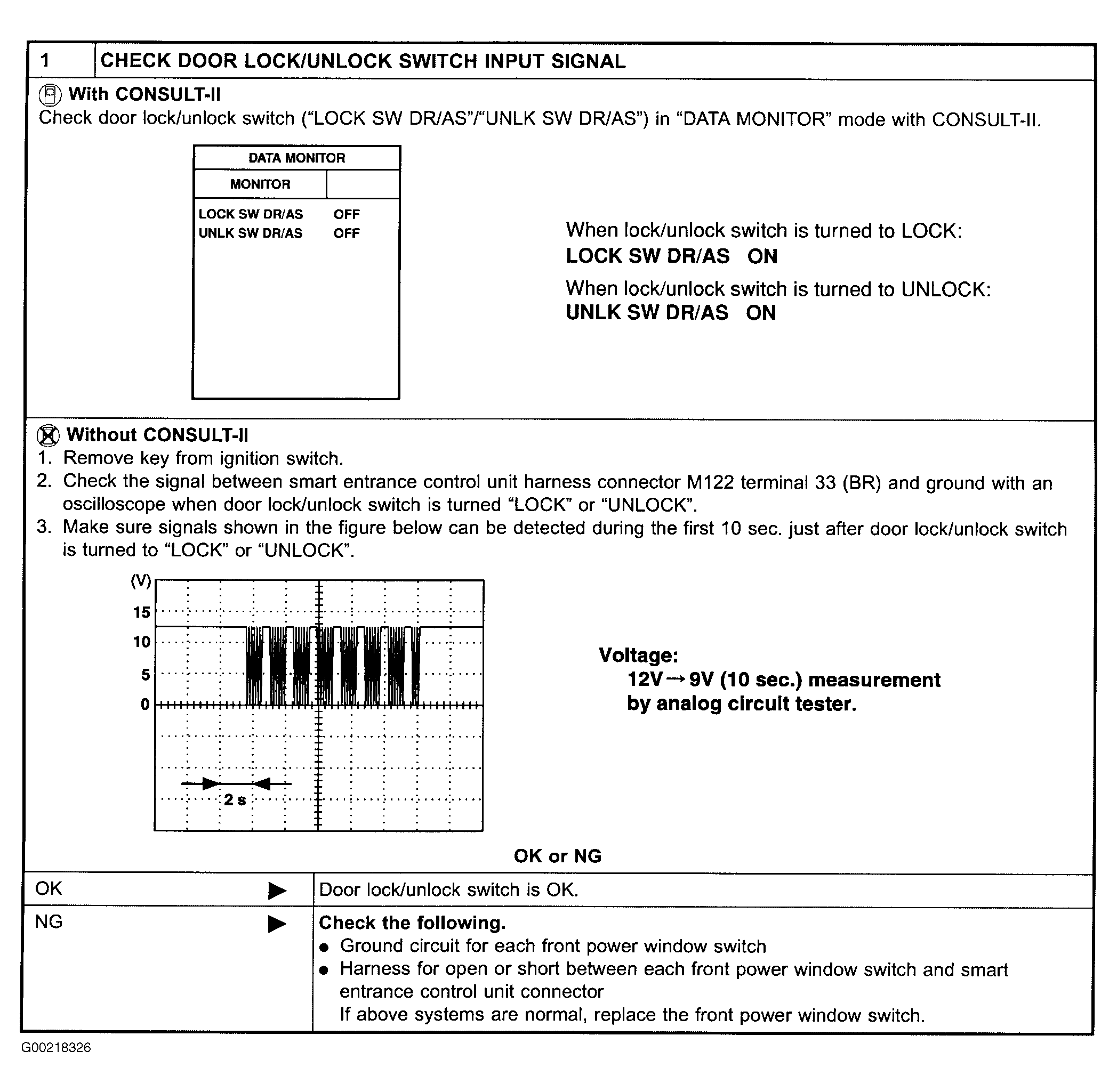 Home >> Nissan-Datsun >> 2004 >> Sentra SE-R >> Repair and Diagnosis >> External Pages >> Different car >> Section 171 (Remote Keyless Entry System) >> System Tests >> Left Door Lock/Unlock Switch Test