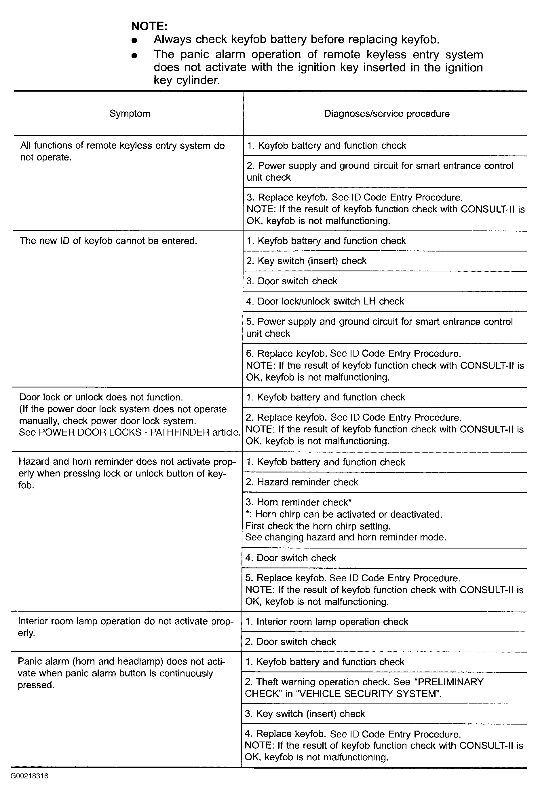 For power door lock system inspection, see POWER DOOR LOCKS - PATHFINDER