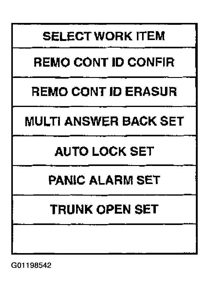 Home >> Nissan-Datsun >> 2004 >> Sentra SE-R >> Repair and Diagnosis >> External Pages >> Different car >> Section 859 (Remote Keyless Entry System) >> Check Key Fob Battery and Function >> Id Code Entry Procedure >> Key Fob ID Set Up With CONSULT-II
