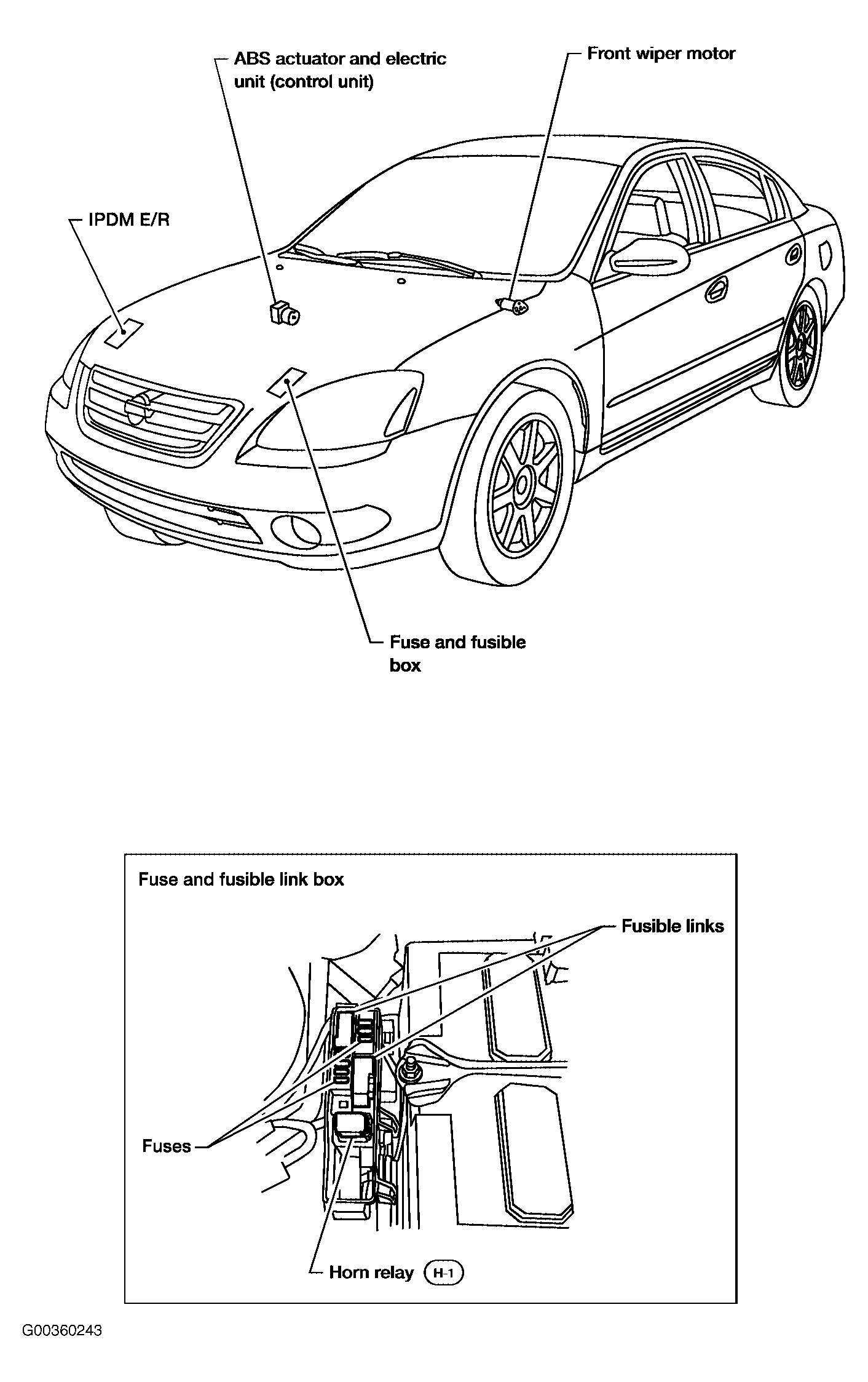 IPDM E/R On right front of engine compartment, behind headlight. See Figure .