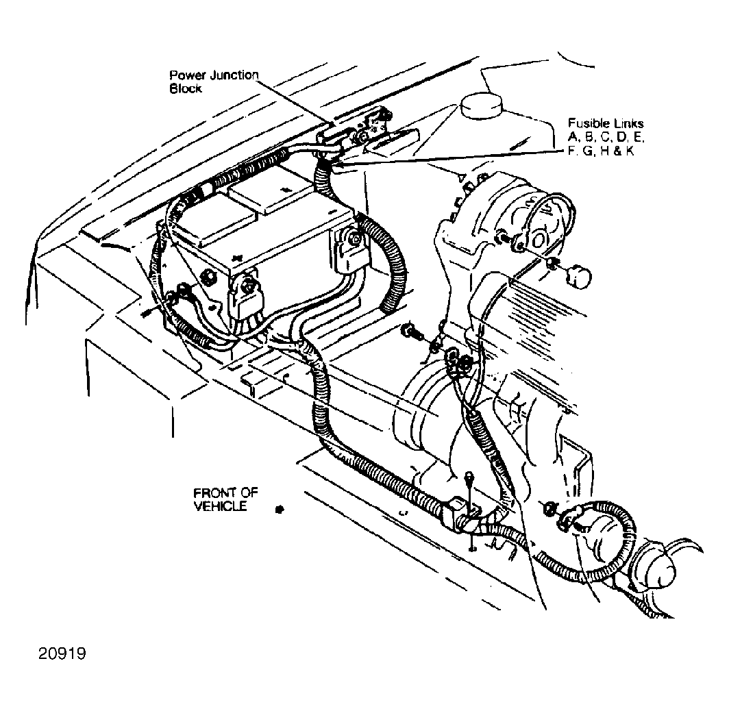 | Fusible Links K (Gray - Toronado) Underhood Relay Center | In harness next to junction block on right fender panel. See Figure. |
