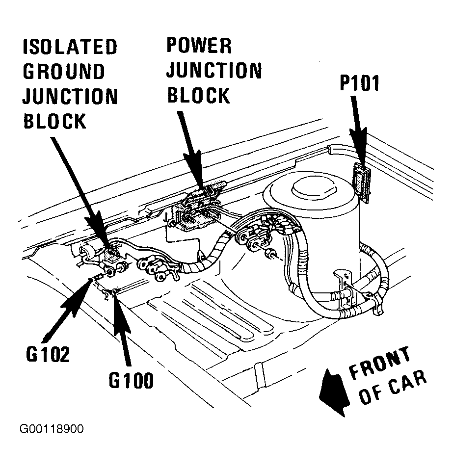 | Isolated Ground Junction Block | Right Front Of Engine Compartment, Behind Battery. See Fig 3 . |