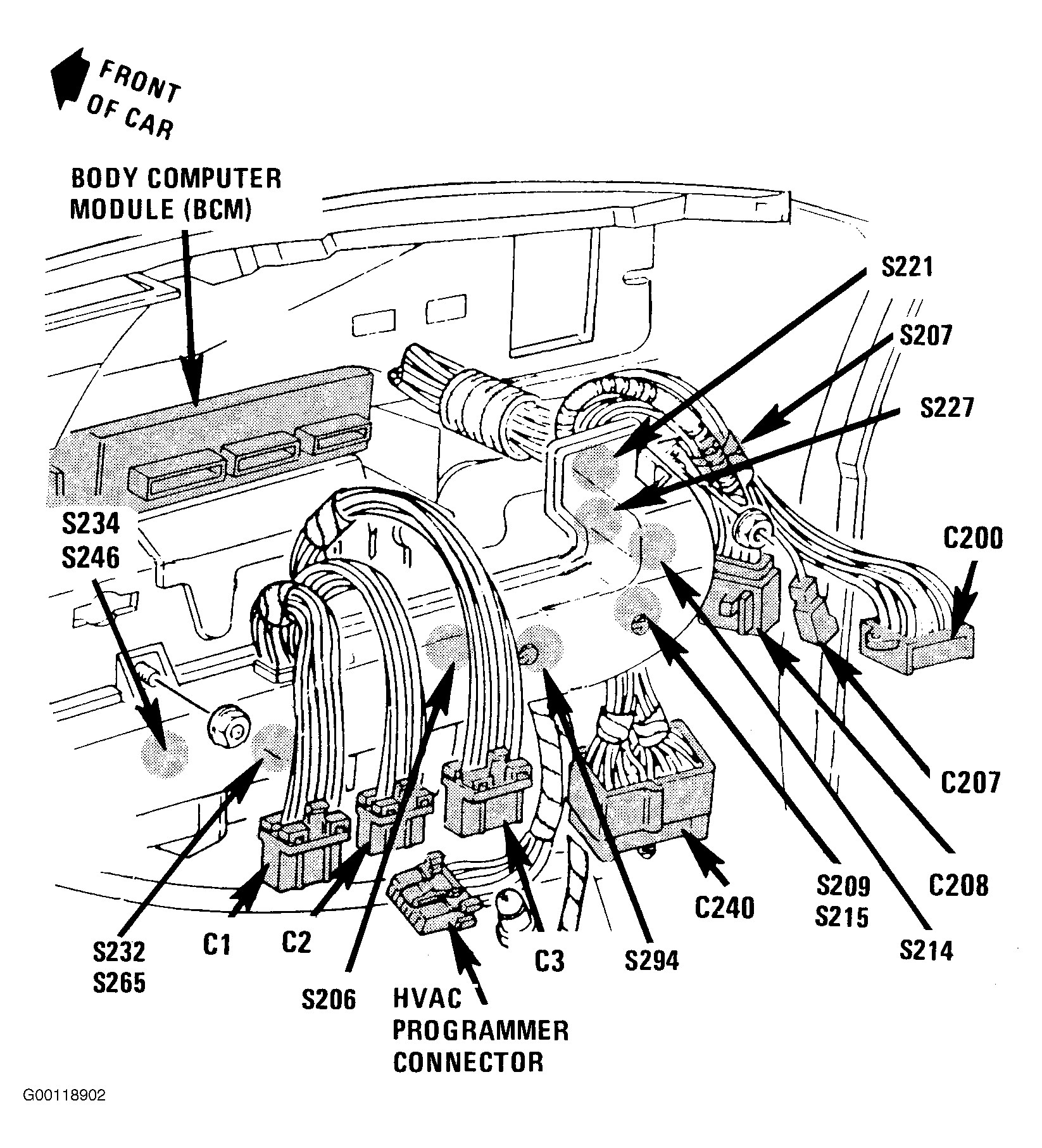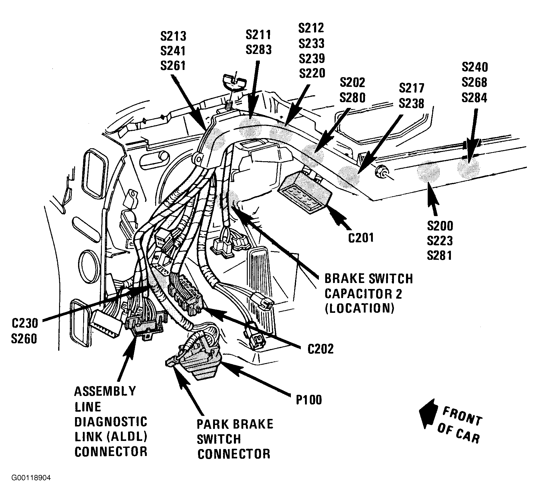 | C201 (116 Cavities) | Behind Center Of Instrument Panel, Right Of Steering Column. See Fig 6 , Figure and Figure . |