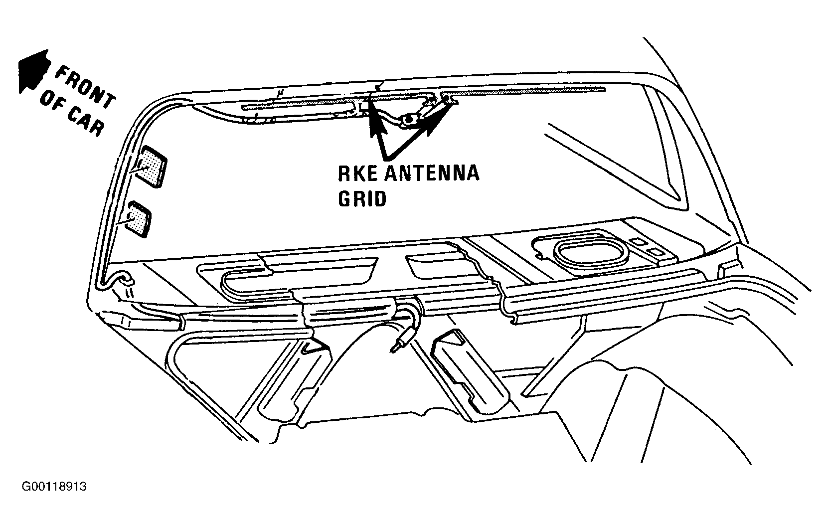 | RKE Antenna Grid | Center Of Rear Window Header. See Fig 14 . |