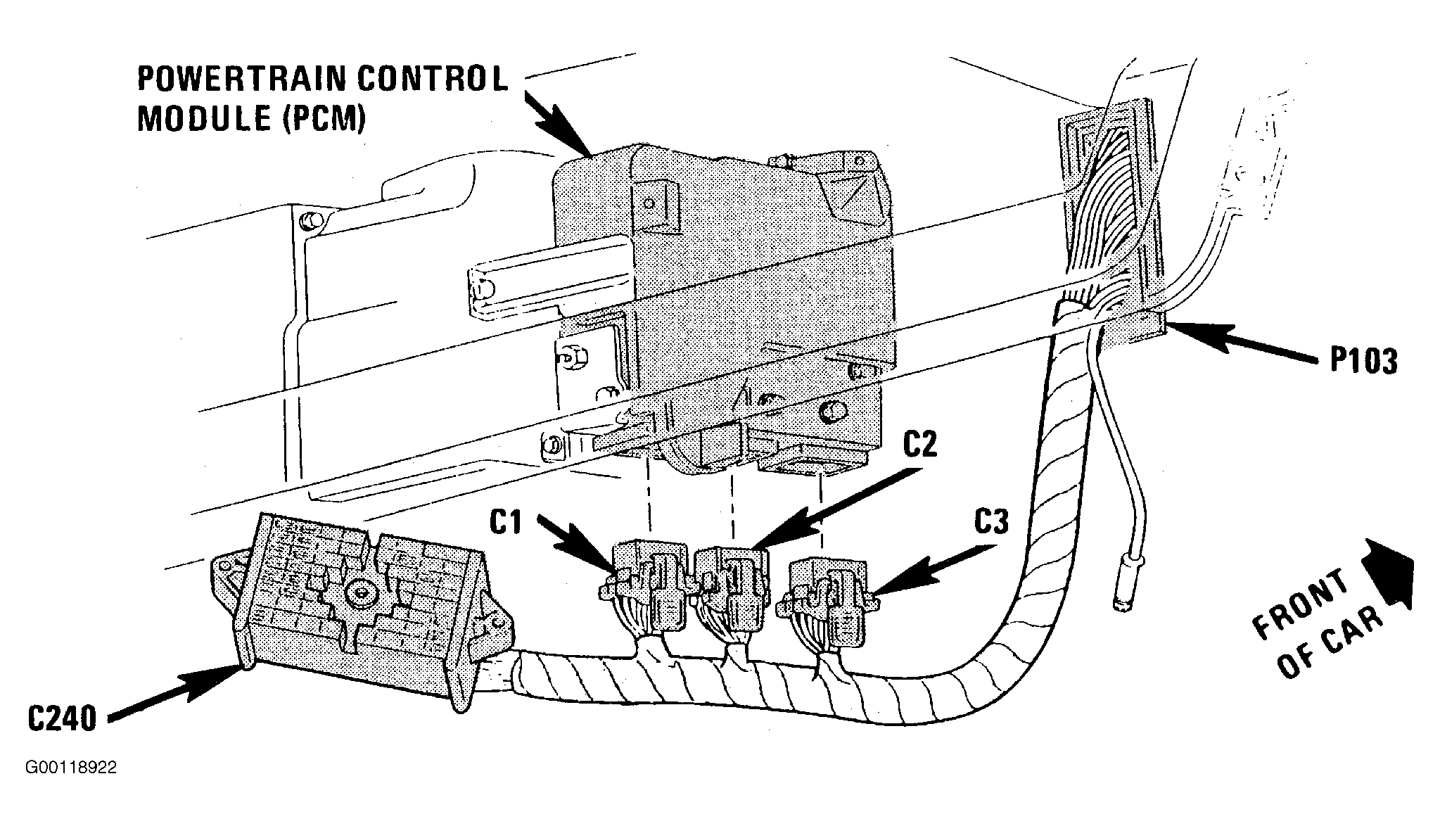 | C240 (56 Cavities) | Behind Right Side Of Instrument Panel, Near Powertrain Control Module (PCM). See Fig 17 and Figure . |