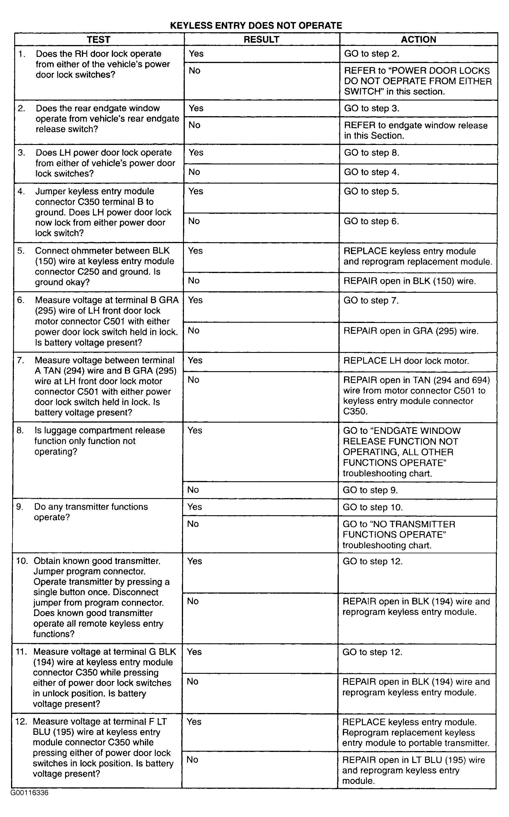 Test A: Keyless Entry Does Not Operate